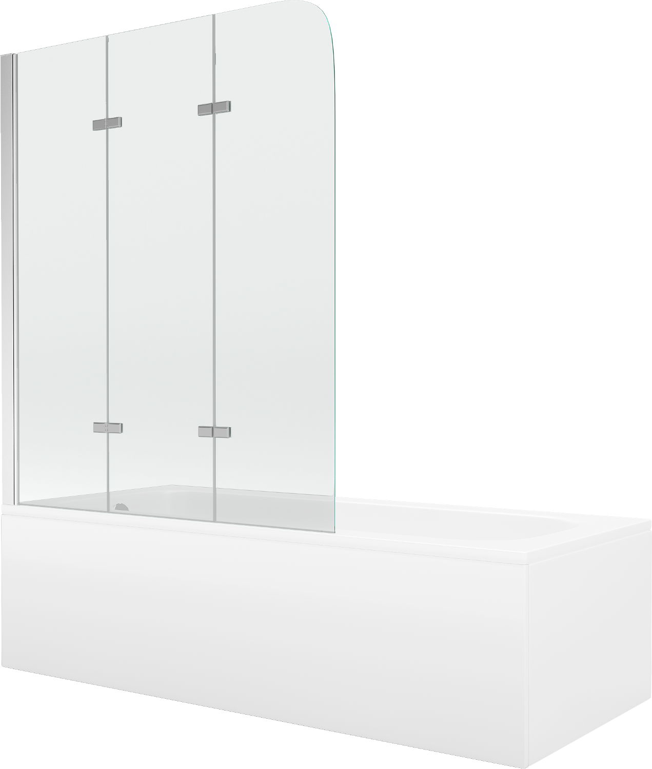 Mexen Vega vasca rettangolare 160 x 70 cm con pannellatura e paravento a 3 ante 120 cm, trasparente, cromato