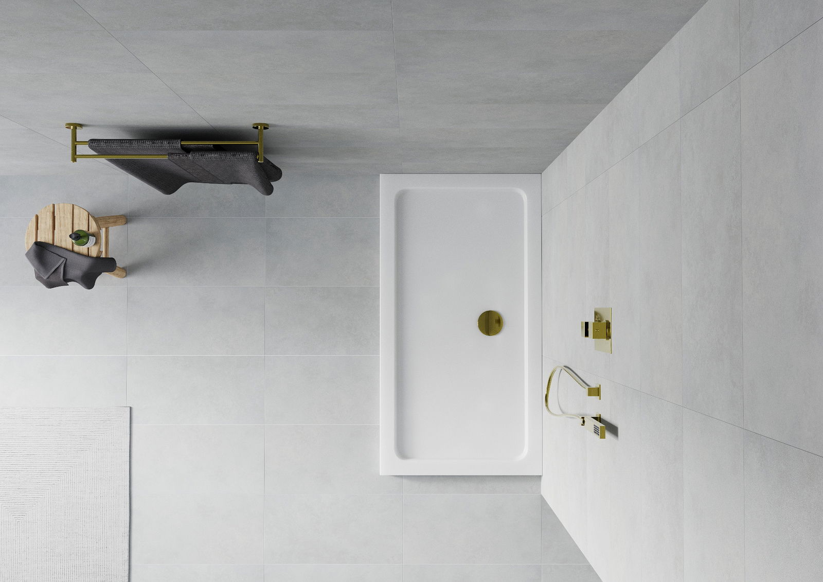 Il piatto doccia è stato progettato in modo che l'acqua possa defluire liberamente verso lo scarico. Garantisce un rapido ed efficiente drenaggio dell'acqua dalla superficie del piatto doccia, prevenendo la formazione di pozzanghere e l'allagamento del bagno.