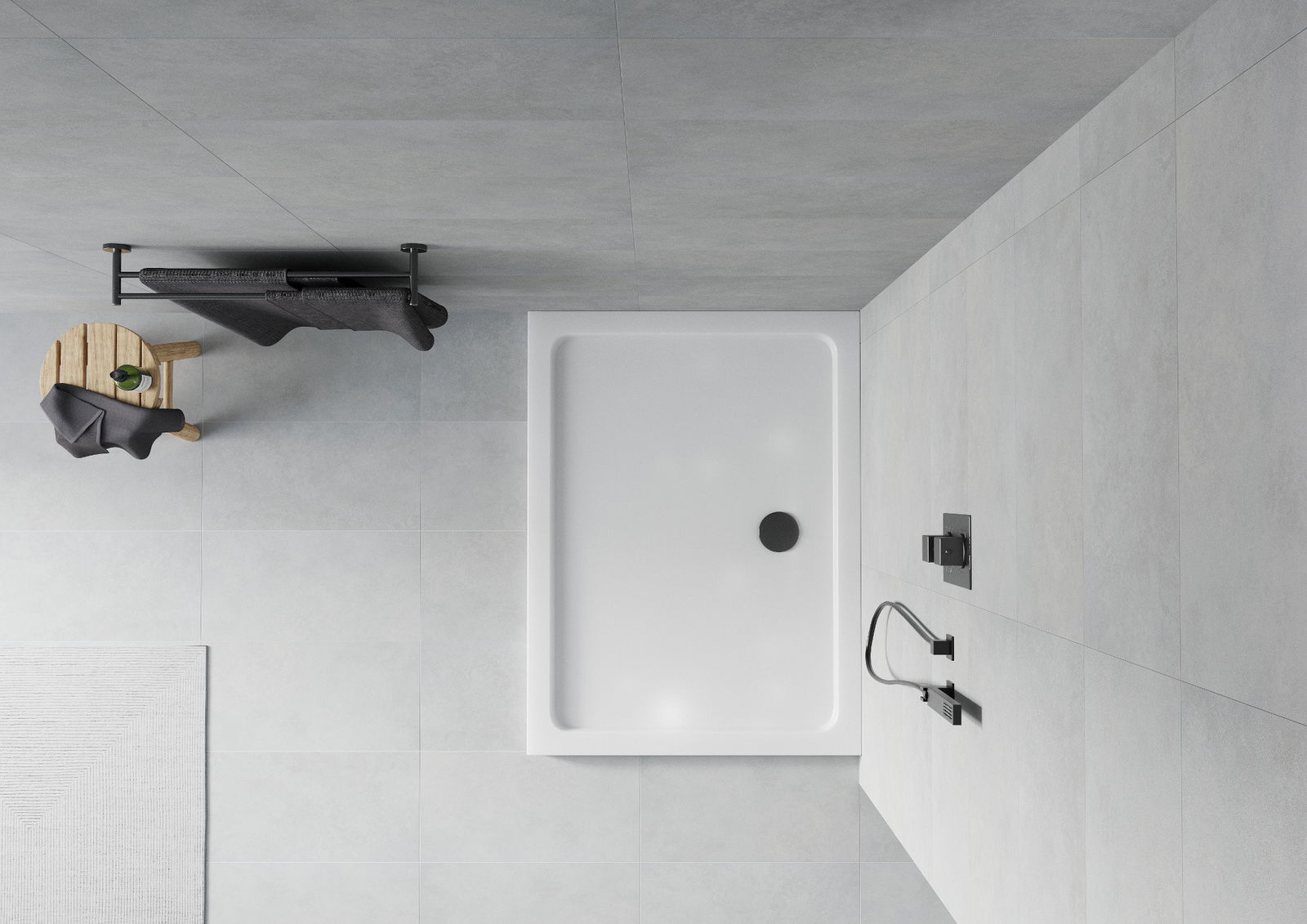 Il piatto doccia è stato progettato in modo che l'acqua possa defluire liberamente verso lo scarico. Garantisce un rapido ed efficiente drenaggio dell'acqua dalla superficie del piatto doccia, prevenendo la formazione di pozzanghere e l'allagamento del bagno.