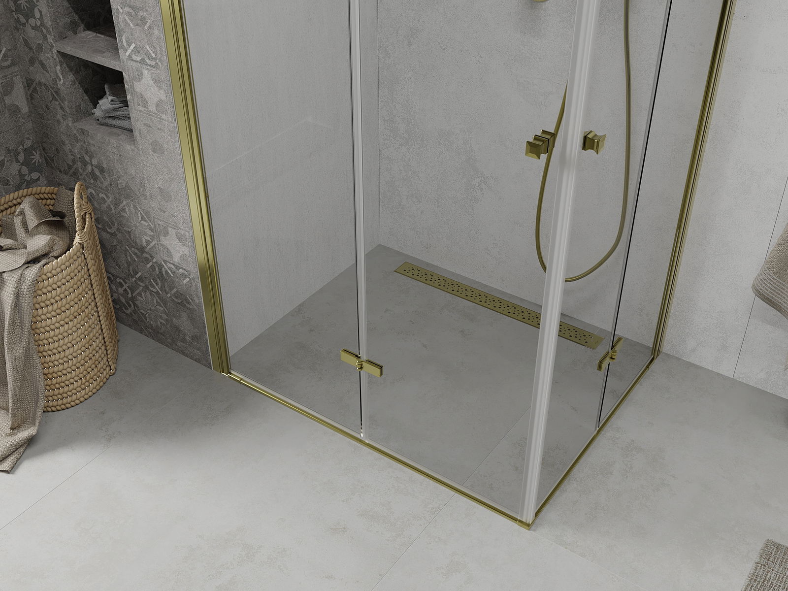 Il prodotto, a seconda delle esigenze, può essere installato sia sul piatto doccia che direttamente sul pavimento. Il metodo di installazione universale consente di adattare il prodotto a diversi tipi di bagni e configurazioni di spazio.