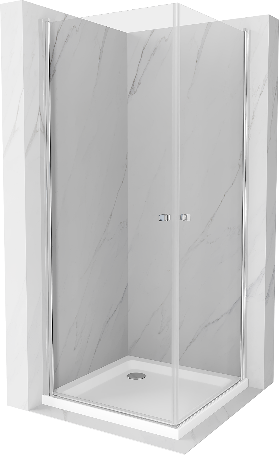 Mexen Pretoria Duo cabina doccia ad anta battente 70 x 70 cm, trasparente, cromo + piatto doccia Flat - 852-070-070-01-02-4010
