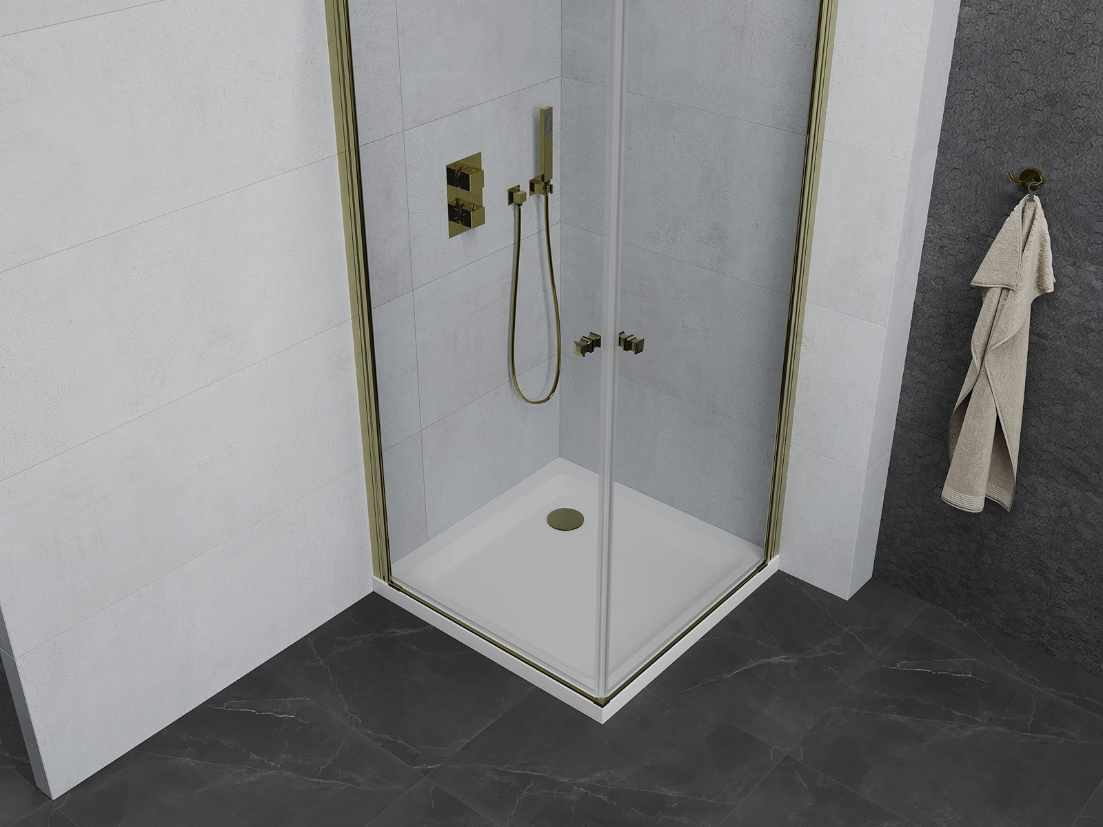 Mexen Pretoria Duo cabina doccia a battente 80 x 80 cm, trasparente, oro + piatto doccia Flat - 852-080-080-50-02-4010G