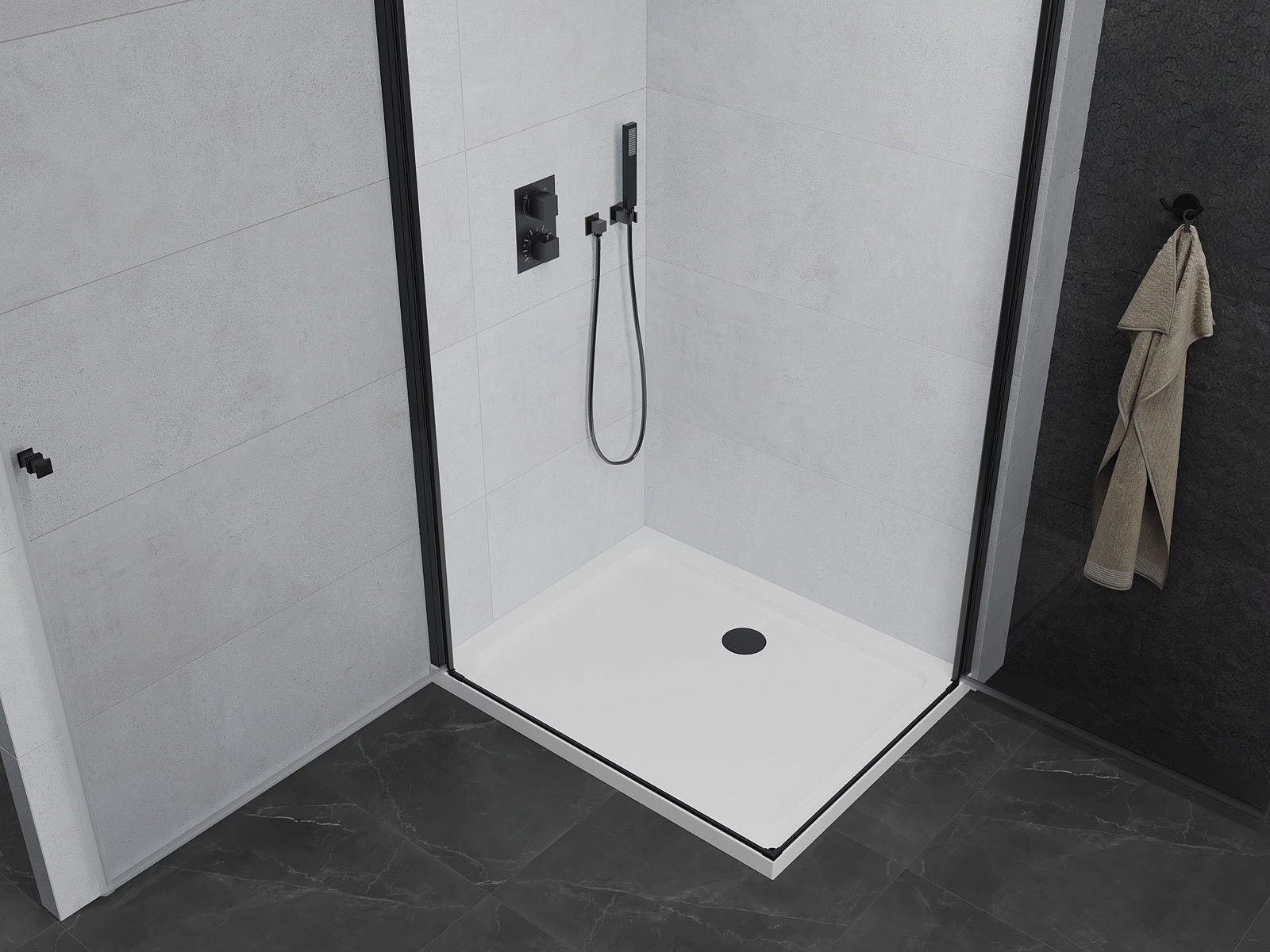Mexen Pretoria Duo cabina doccia a battente 80 x 70 cm, trasparente, nera + piatto Flat - 852-080-070-70-02-4010B