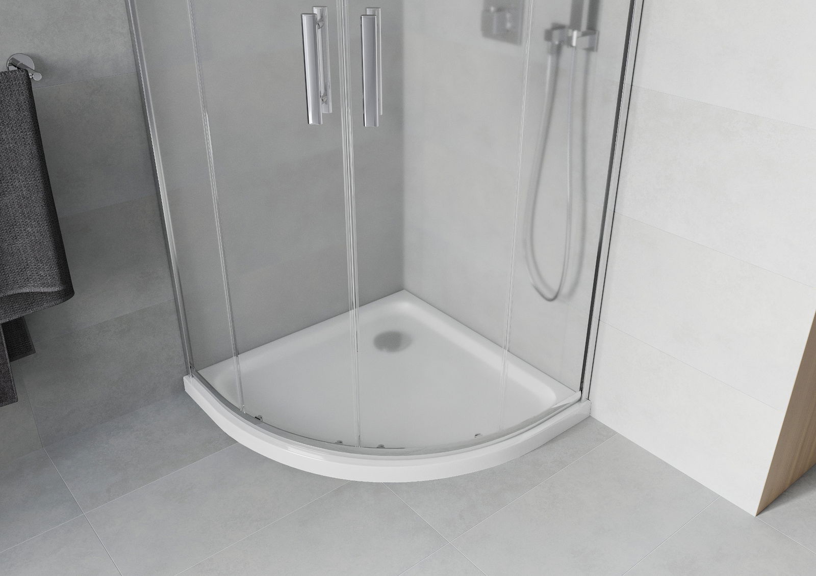 Mexen Rio cabina doccia semicircolare 80 x 80 cm, smerigliata, cromo + piatto Flat, bianco - 863-080-080-01-30-4110