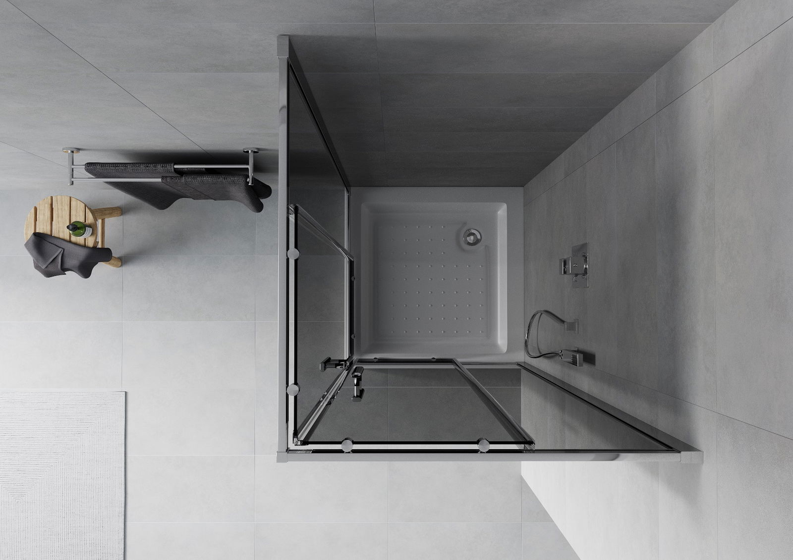 Mexen Rio cabina doccia quadrata 80 x 80 cm, grafite, cromo + piatto doccia Rio, bianco - 860-080-080-01-40-4510