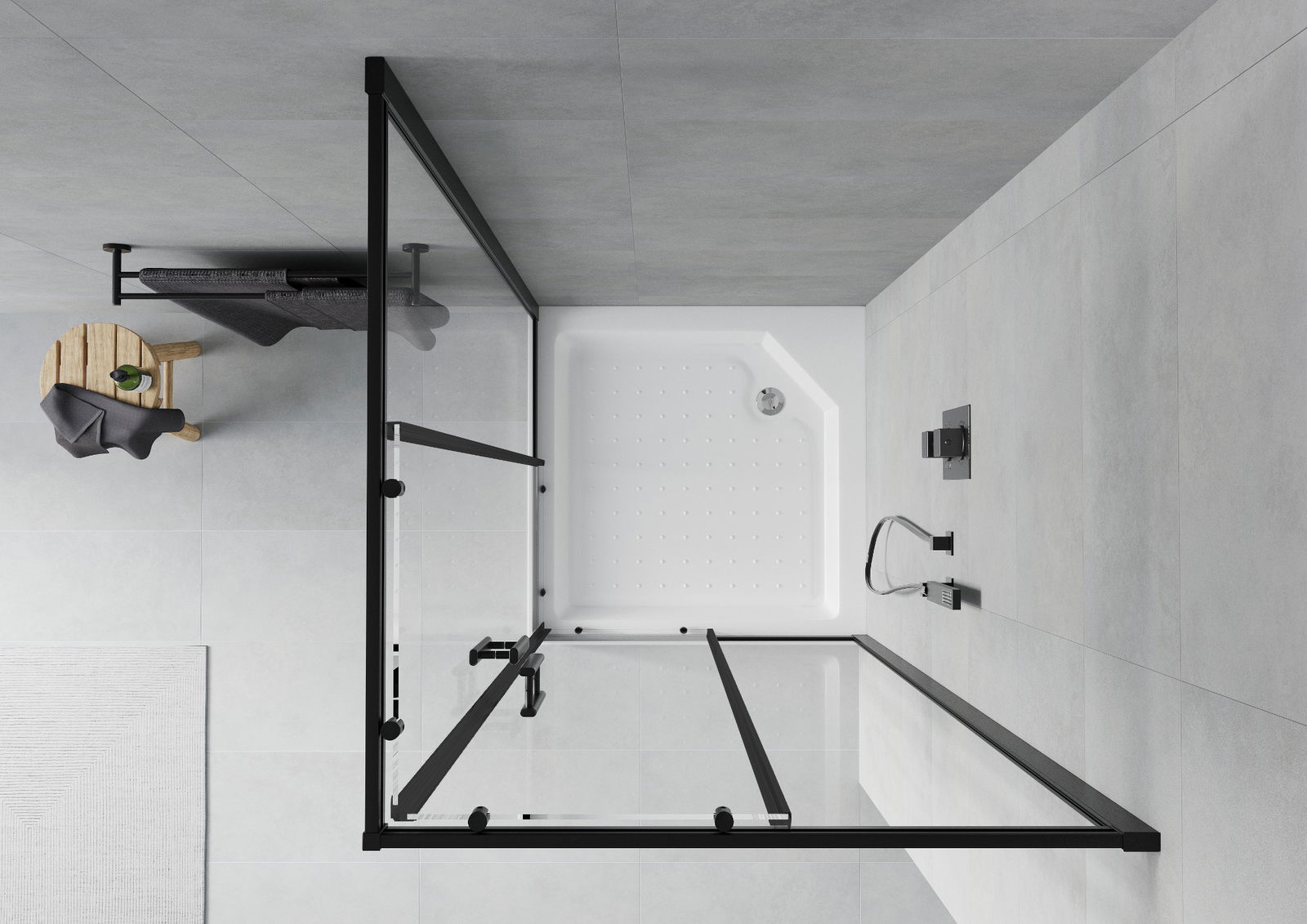 Mexen Rio cabina doccia quadrata 90 x 90 cm, trasparente, nero + piatto doccia Rio, bianco - 860-090-090-70-00-4510