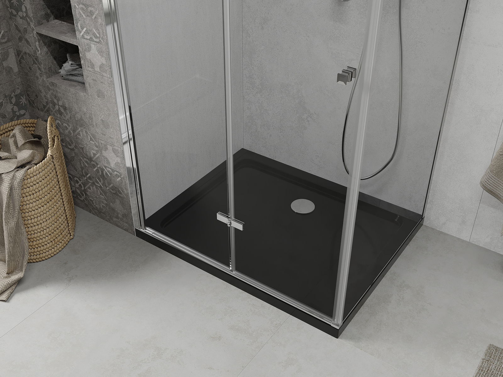 Mexen Lima cabina doccia pieghevole 120 x 80 cm, trasparente, cromo + piatto doccia Flat, nero - 856-120-080-01-00-4070