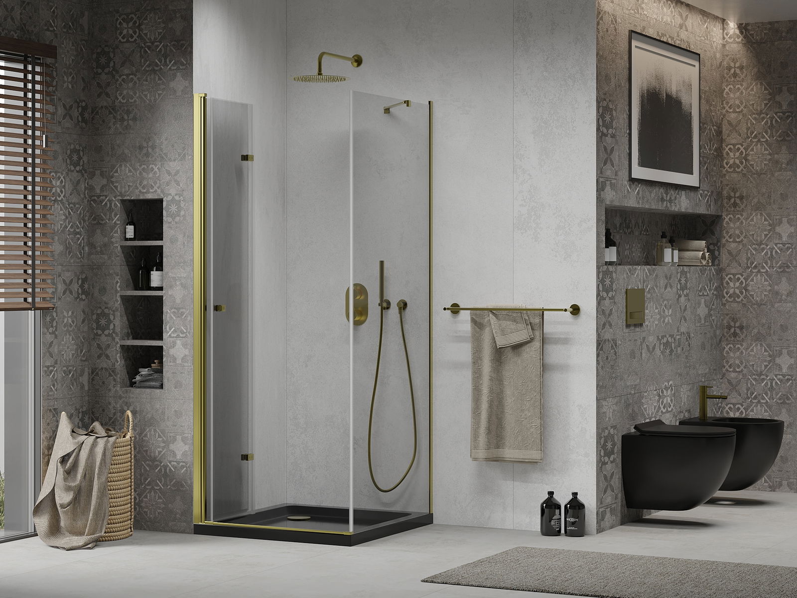 L'impugnatura pratica e comoda è realizzata in metallo durevole e resistente. La forma alla moda combinata con una finitura abbinata al colore dei profili conferisce all'insieme un aspetto moderno e elegante, enfatizzando l'estetica di ogni bagno.