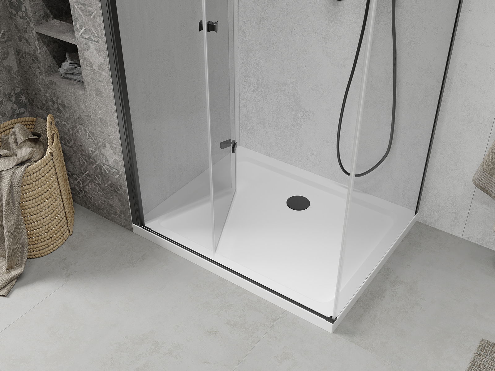 Mexen Lima cabina doccia pieghevole 90 x 70 cm, trasparente, nera + piatto doccia Flat, bianco - 856-090-070-70-00-4010B
