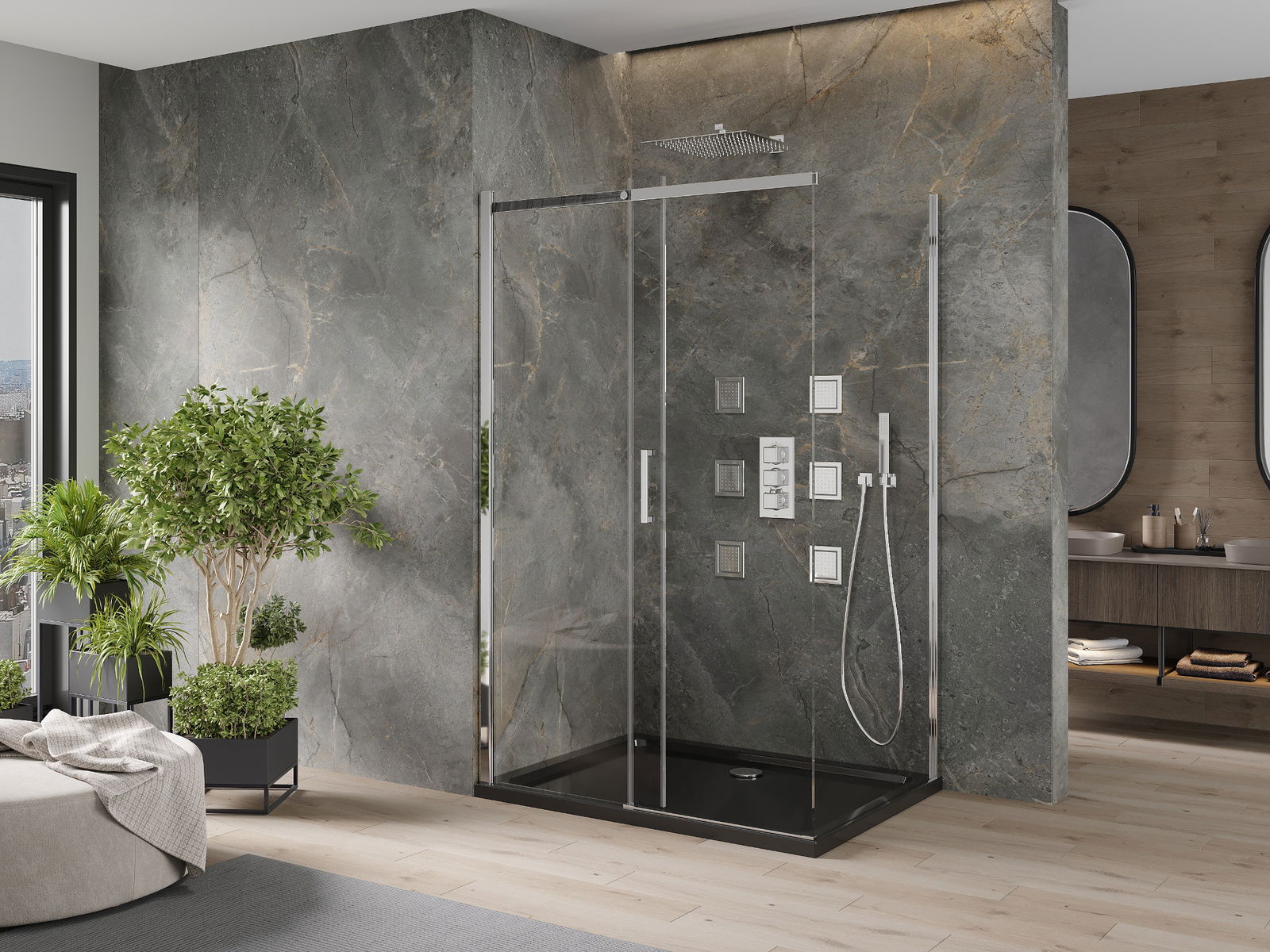 Le porte scorrevoli si muovono su speciali guide e non richiedono spazio aggiuntivo per essere aperte, quindi sono adatte a bagni più piccoli. Grazie ai doppi rulli con corpo in metallo, il loro movimento è fluido.