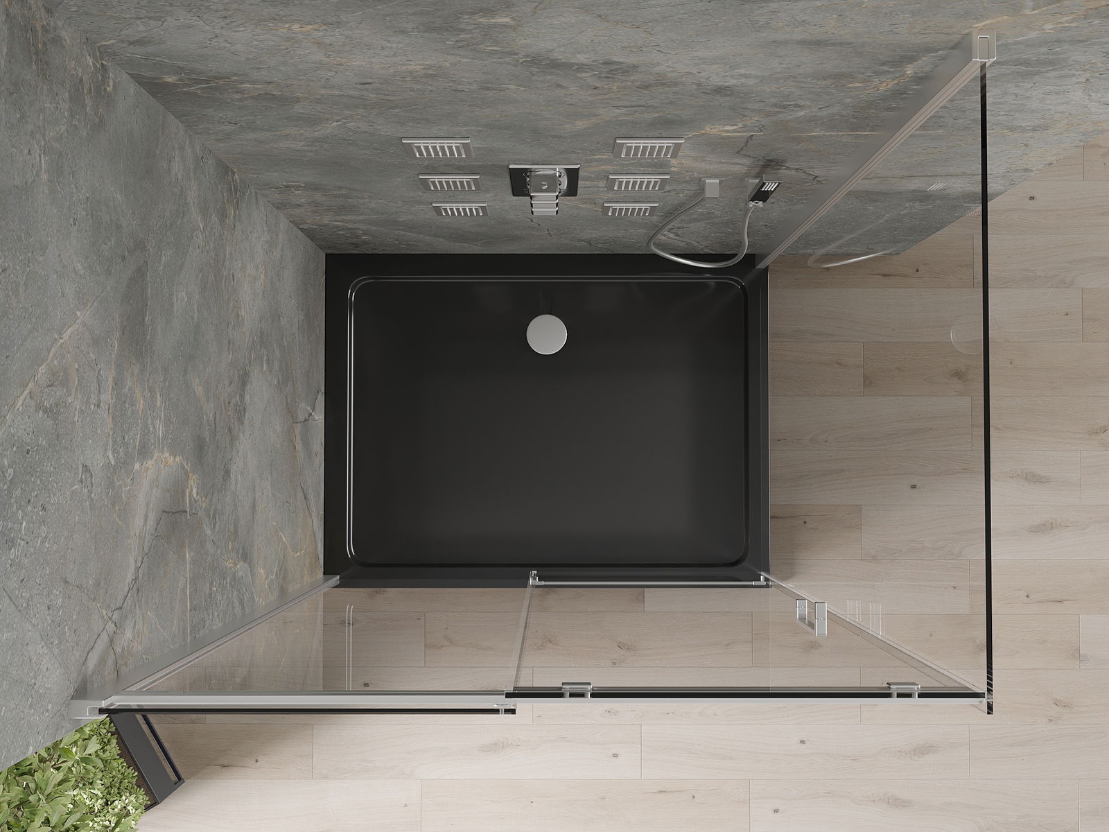 Mexen Omega cabina doccia scorrevole 100 x 90 cm, trasparente, cromo + piatto Flat, nero - 825-100-090-01-00-4070