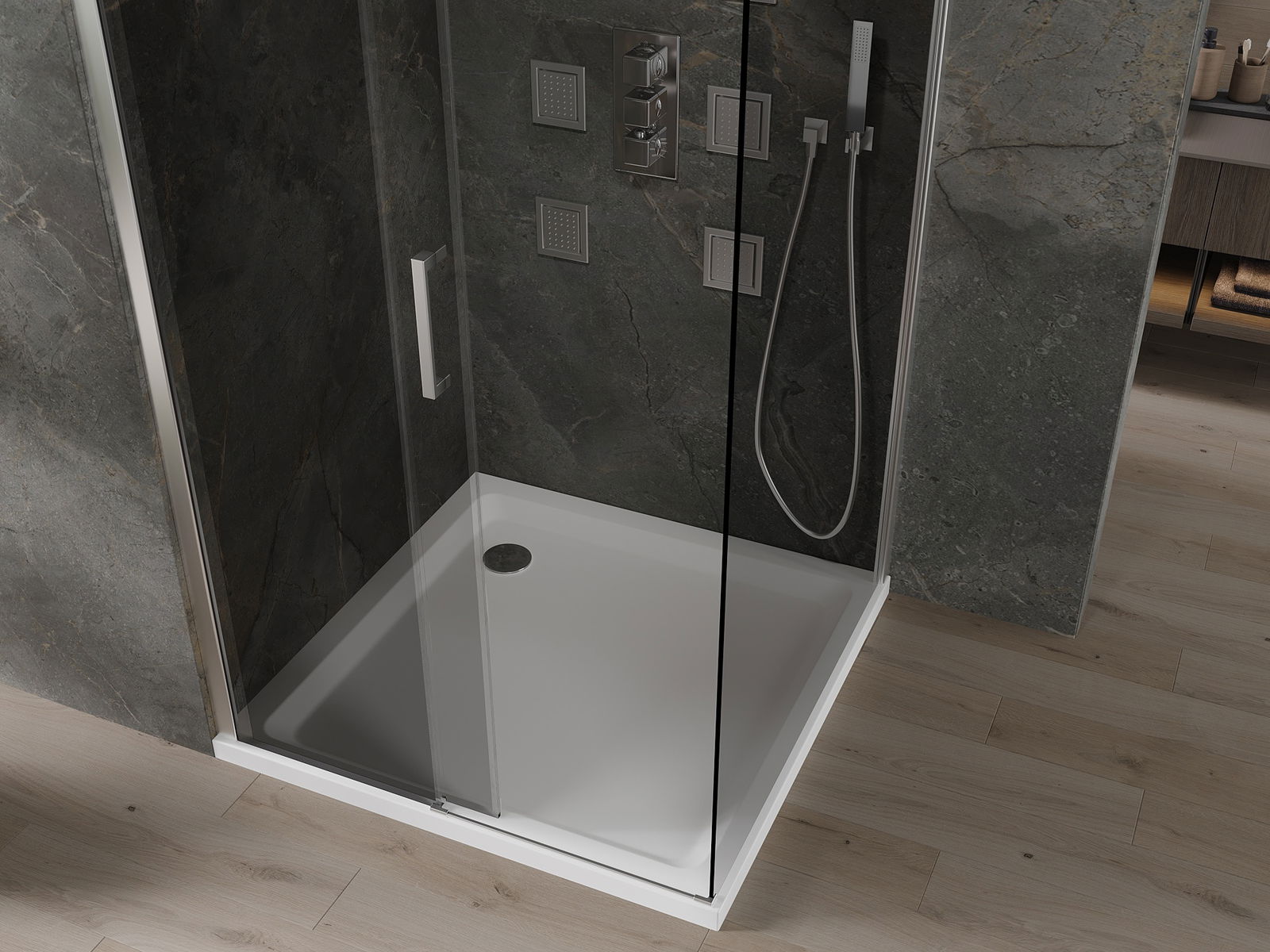 Grazie all'utilizzo di un sistema di montaggio universale, le porte della doccia possono essere montate a destra o a sinistra, a seconda delle esigenze. Questo ti permette di progettare facilmente una doccia adatta allo spazio del bagno.
