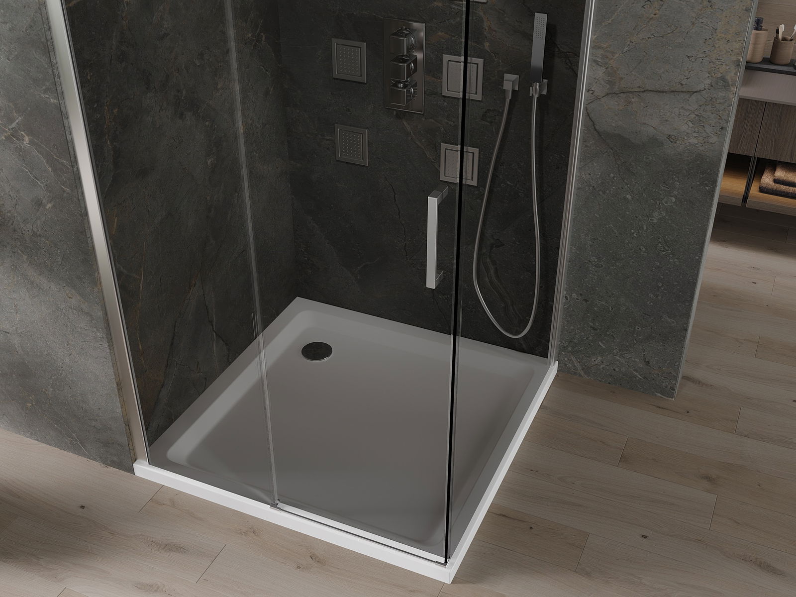 Mexen Omega cabina doccia scorrevole 100 x 100 cm, grafite, cromo + piatto doccia Flat, bianco - 825-100-100-01-40-4010