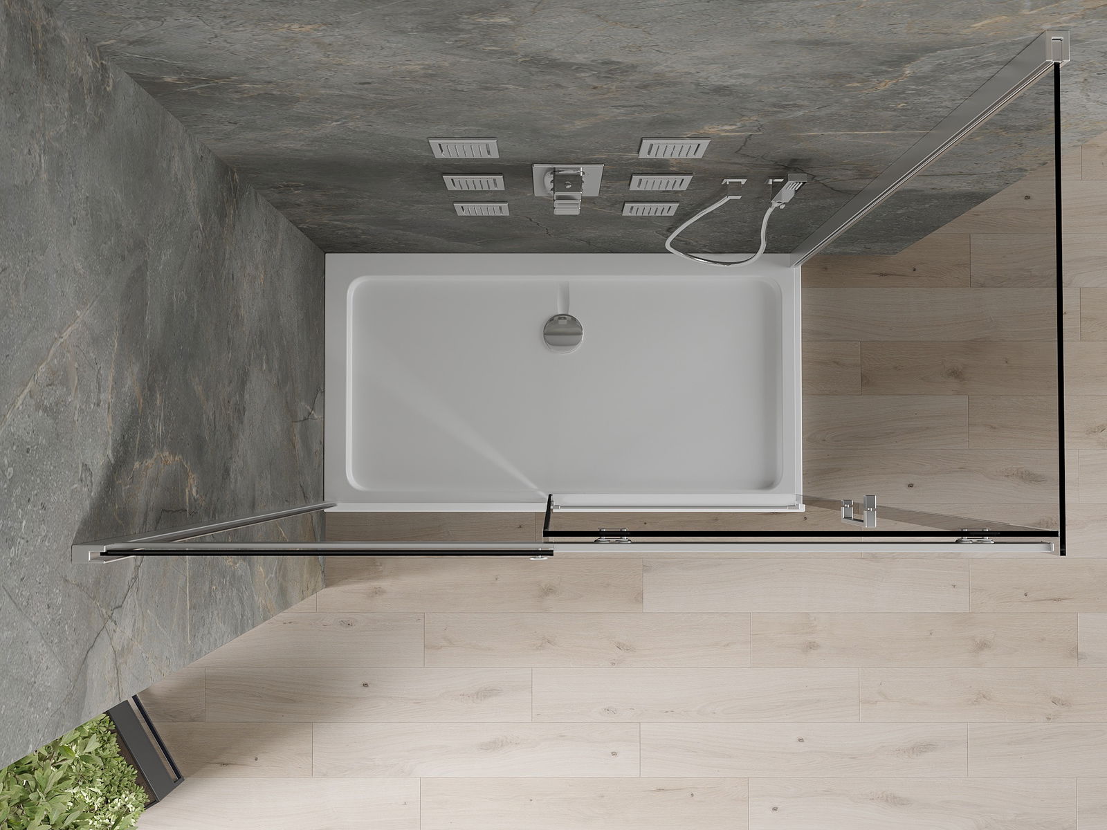 Grazie all'uso di un sistema di montaggio universale, le porte della doccia possono essere montate a destra o a sinistra, a seconda delle esigenze. In questo modo puoi progettare facilmente una doccia adatta allo spazio del bagno.