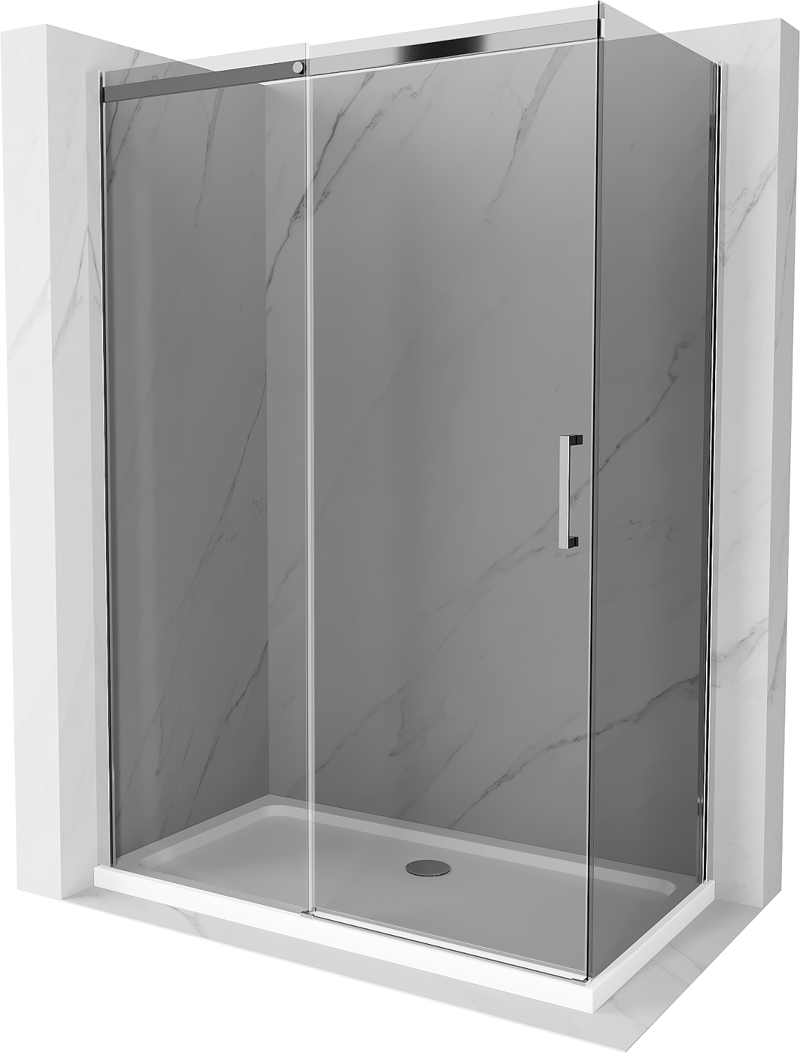 Mexen Omega cabina doccia scorrevole 140 x 80 cm, grafite, cromo + piatto Flat, bianco - 825-140-080-01-40-4010
