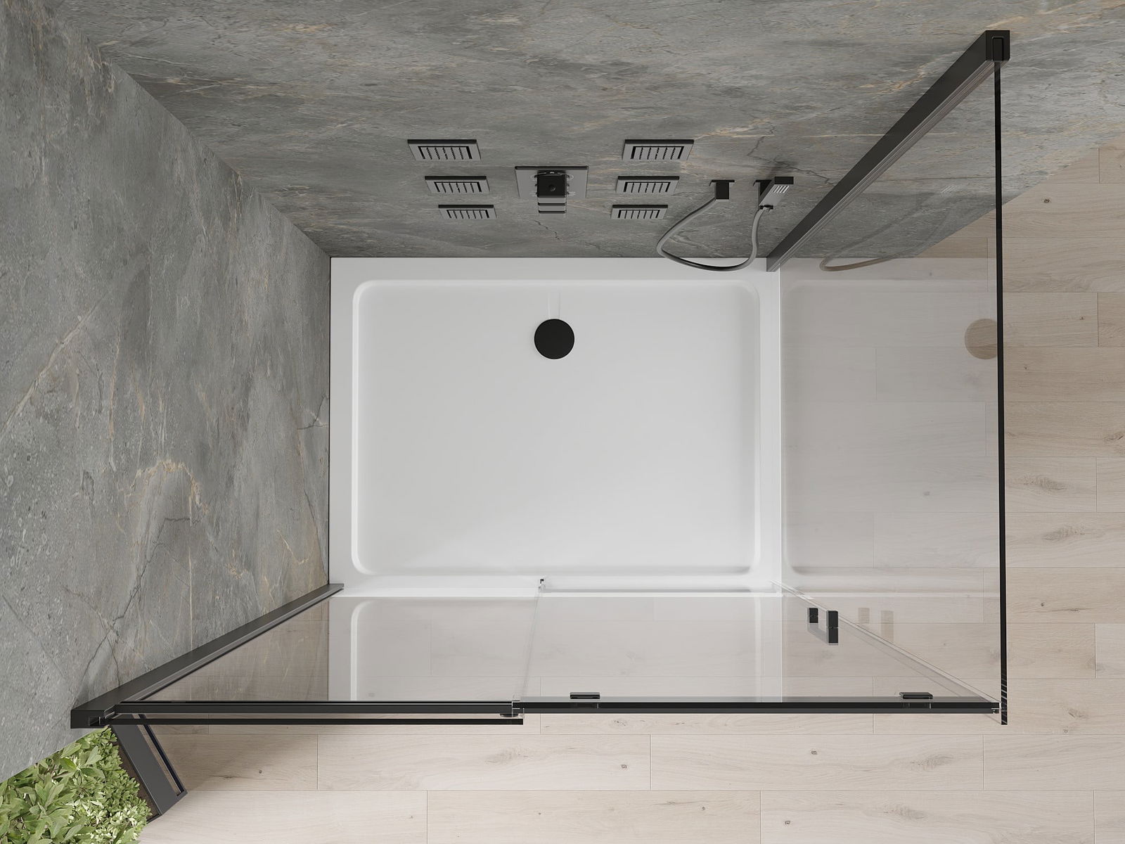 Mexen Omega cabina doccia scorrevole 120 x 80 cm, trasparente, nera + piatto doccia Flat, bianco - 825-120-080-70-00-4010B