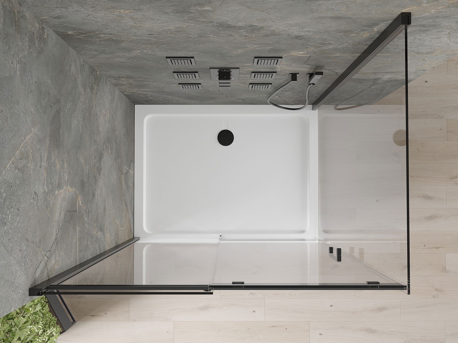 Il piatto doccia è stato progettato in modo che l'acqua possa defluire liberamente verso lo scarico. Garantisce un rapido ed efficiente drenaggio dell'acqua dalla superficie del piatto doccia, prevenendo la formazione di pozzanghere e l'allagamento del bagno.