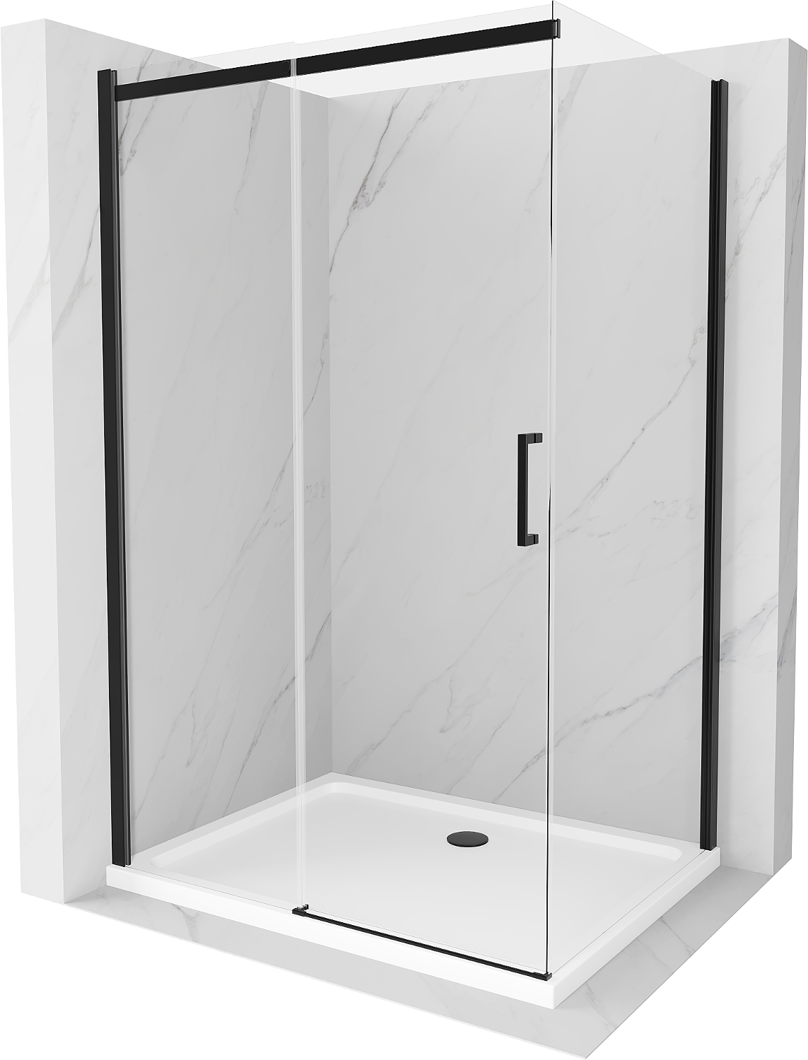 Mexen Omega cabina doccia scorrevole 140 x 90 cm, trasparente, nera + piatto doccia Flat, bianco - 825-140-090-70-00-4010B