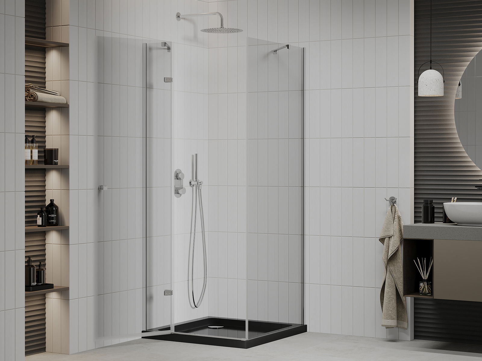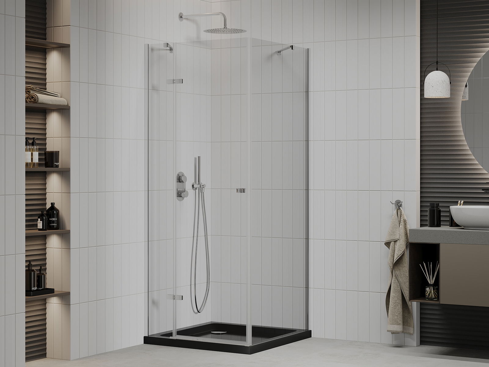Mexen Roma cabina doccia a battente 80 x 80 cm, trasparente, cromo + piatto Flat, nero - 854-080-080-01-00-4070