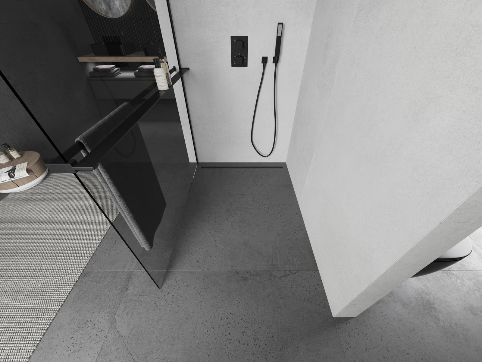 Mexen Kioto+ parete doccia con mensola Walk-in 90 x 200 cm, trasparente, nero - 800-090-121-70-00