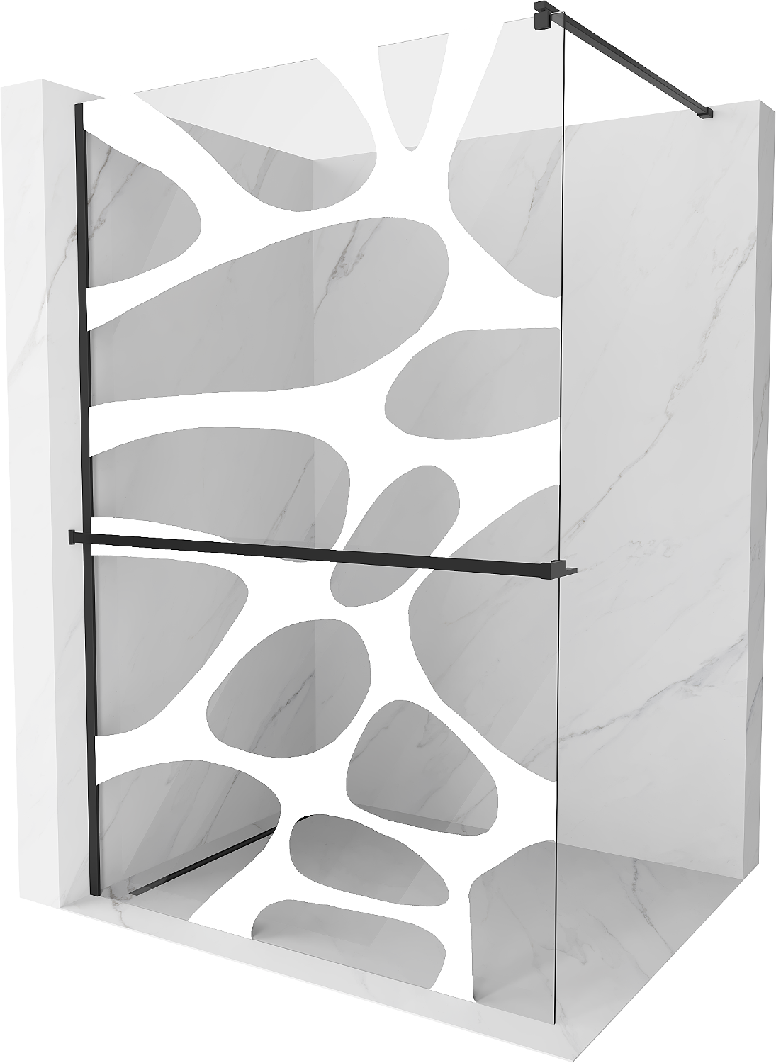 Mexen Kioto+ parete doccia con ripiano Walk-in 110 x 200 cm, onda bianca, nera - 800-110-121-70-97