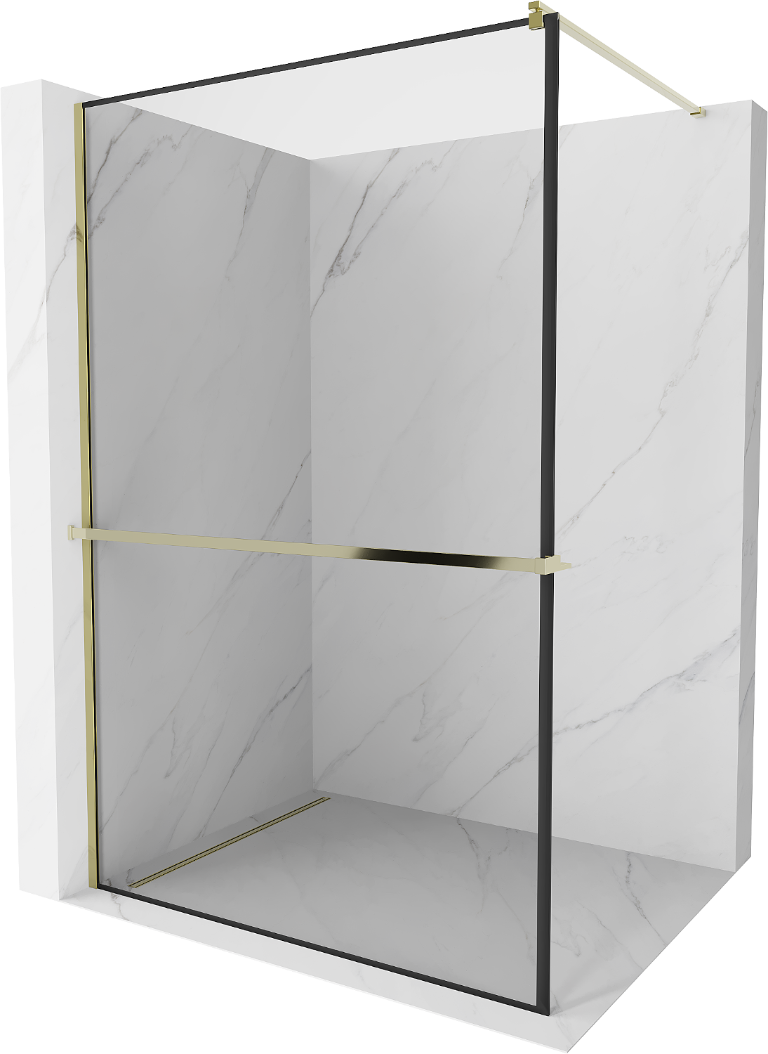 Mexen Kioto+ parete doccia con mensola Walk-in 80 x 200 cm, cornice nera, dorata - 800-080-121-50-70