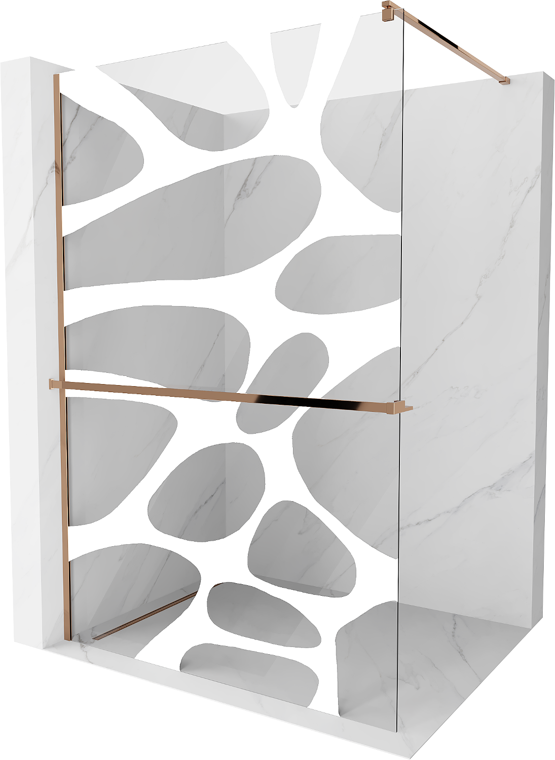 Mexen Kioto+ parete doccia con mensola Walk-in 70 x 200 cm, onda bianca, oro rosa - 800-070-121-60-97
