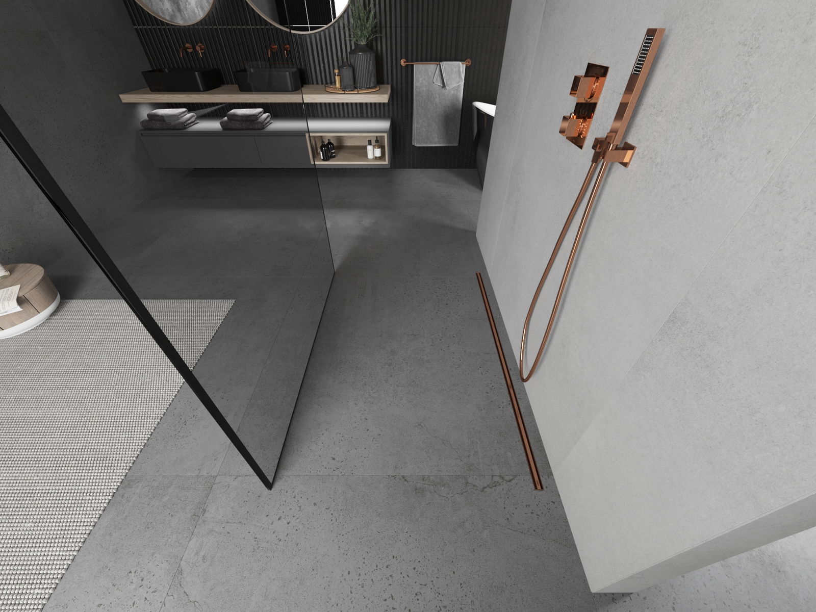 Mexen Kioto parete doccia autoportante 140 x 200 cm, cornice nera 8 mm, oro rosa - 800-140-002-60-70