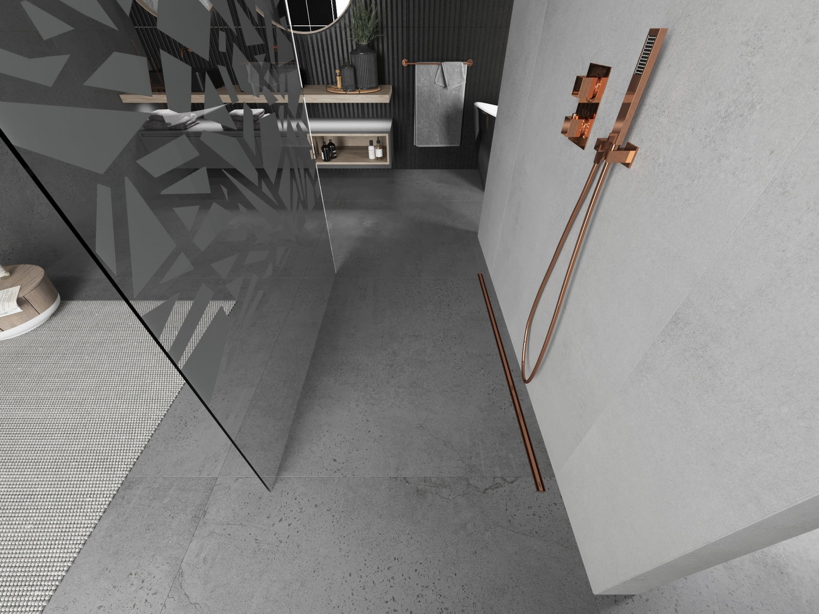 Mexen Kioto parete doccia autoportante 100 x 200 cm, motivo bianco 8 mm, oro rosa - 800-100-002-60-85