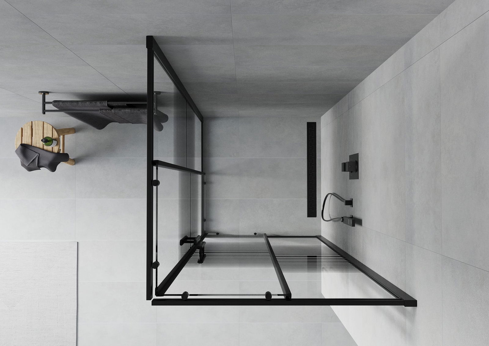 Il prodotto, a seconda delle esigenze, può essere installato sia sul piatto doccia che direttamente sul pavimento. Il metodo di installazione universale consente di adattare il prodotto a diversi tipi di bagni e configurazioni di spazio.