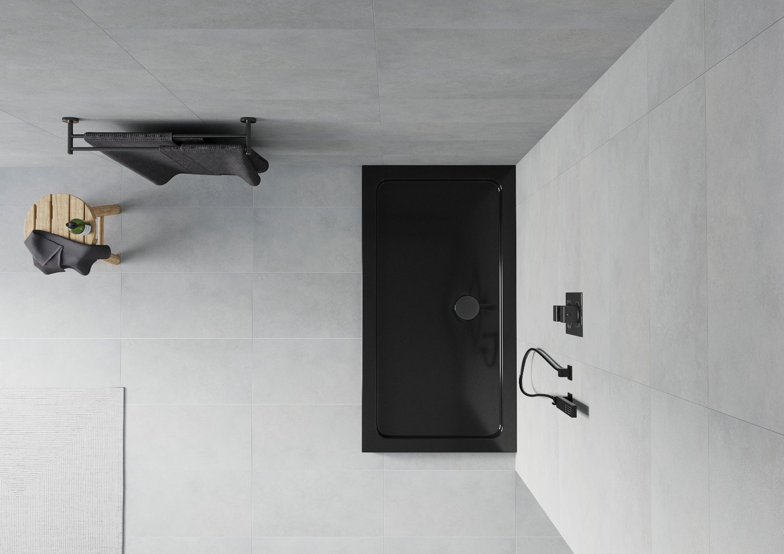 Il piatto doccia è stato progettato in modo che l'acqua possa defluire liberamente verso lo scarico. Garantisce un rapido ed efficiente drenaggio dell'acqua dalla superficie del piatto doccia, prevenendo la formazione di pozzanghere e l'allagamento del bagno.