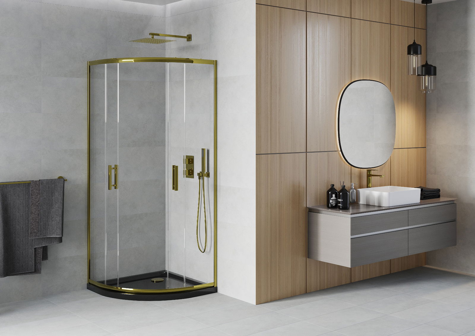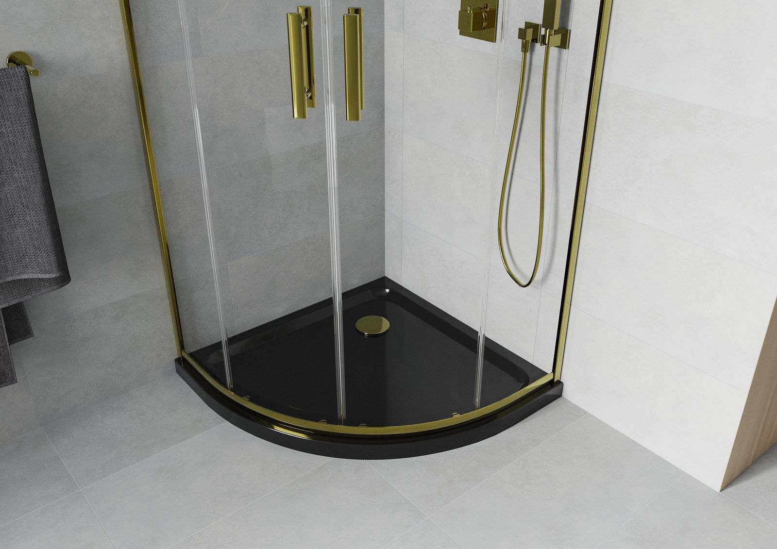 L'impugnatura pratica e comoda è realizzata in metallo durevole e resistente. La forma alla moda combinata con una finitura abbinata al colore dei profili conferisce all'insieme un aspetto moderno e elegante, enfatizzando l'estetica di ogni bagno.