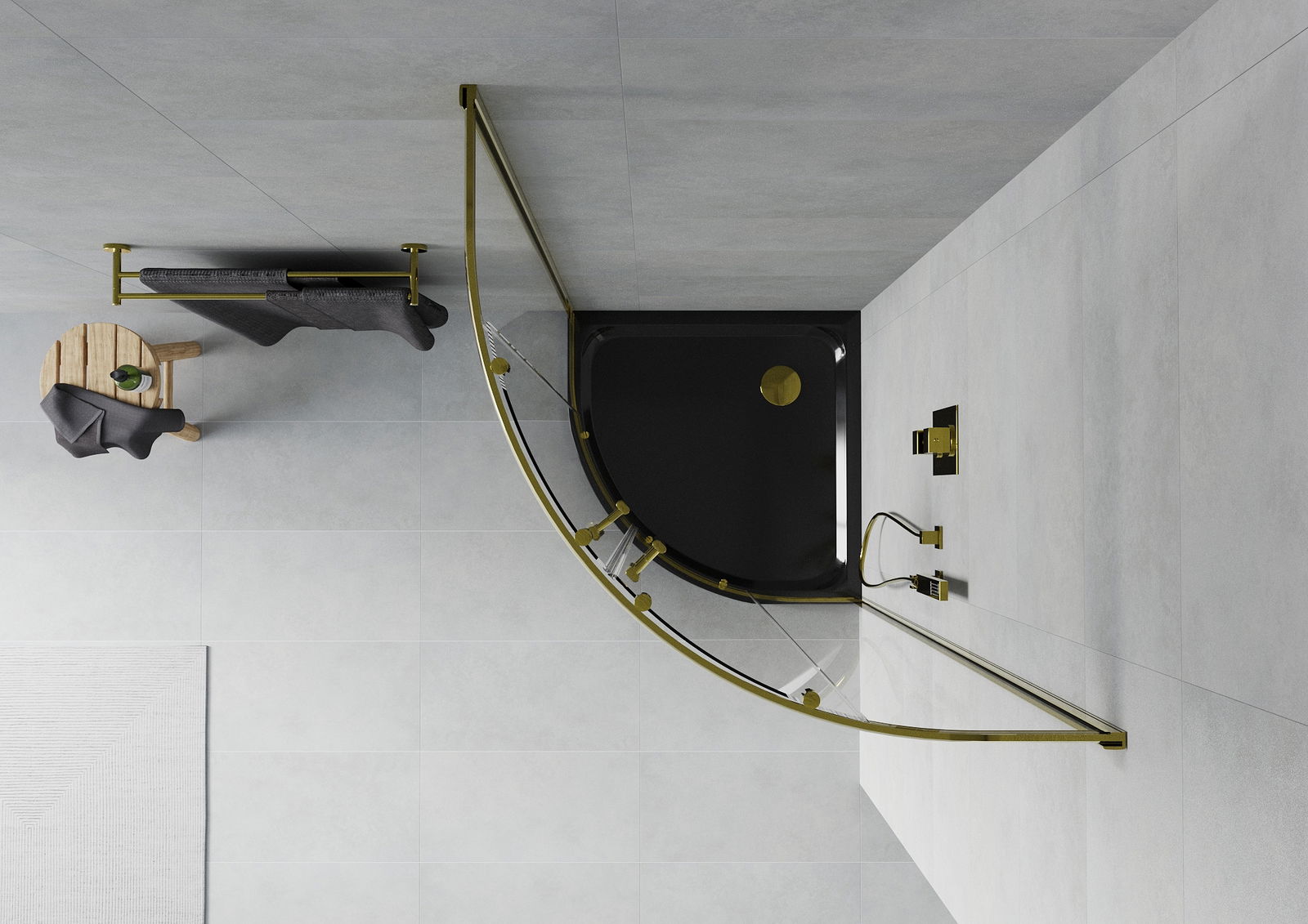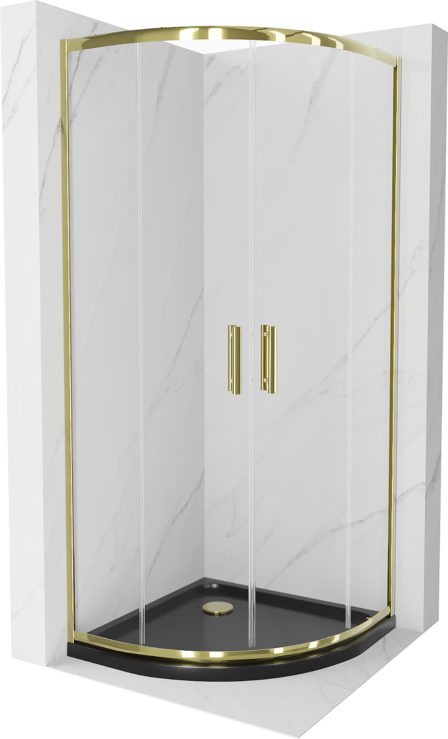 Mexen Rio cabina doccia semicircolare 80 x 80 cm, trasparente, oro + piatto doccia Flat, nero - 863-080-080-50-00-4170G