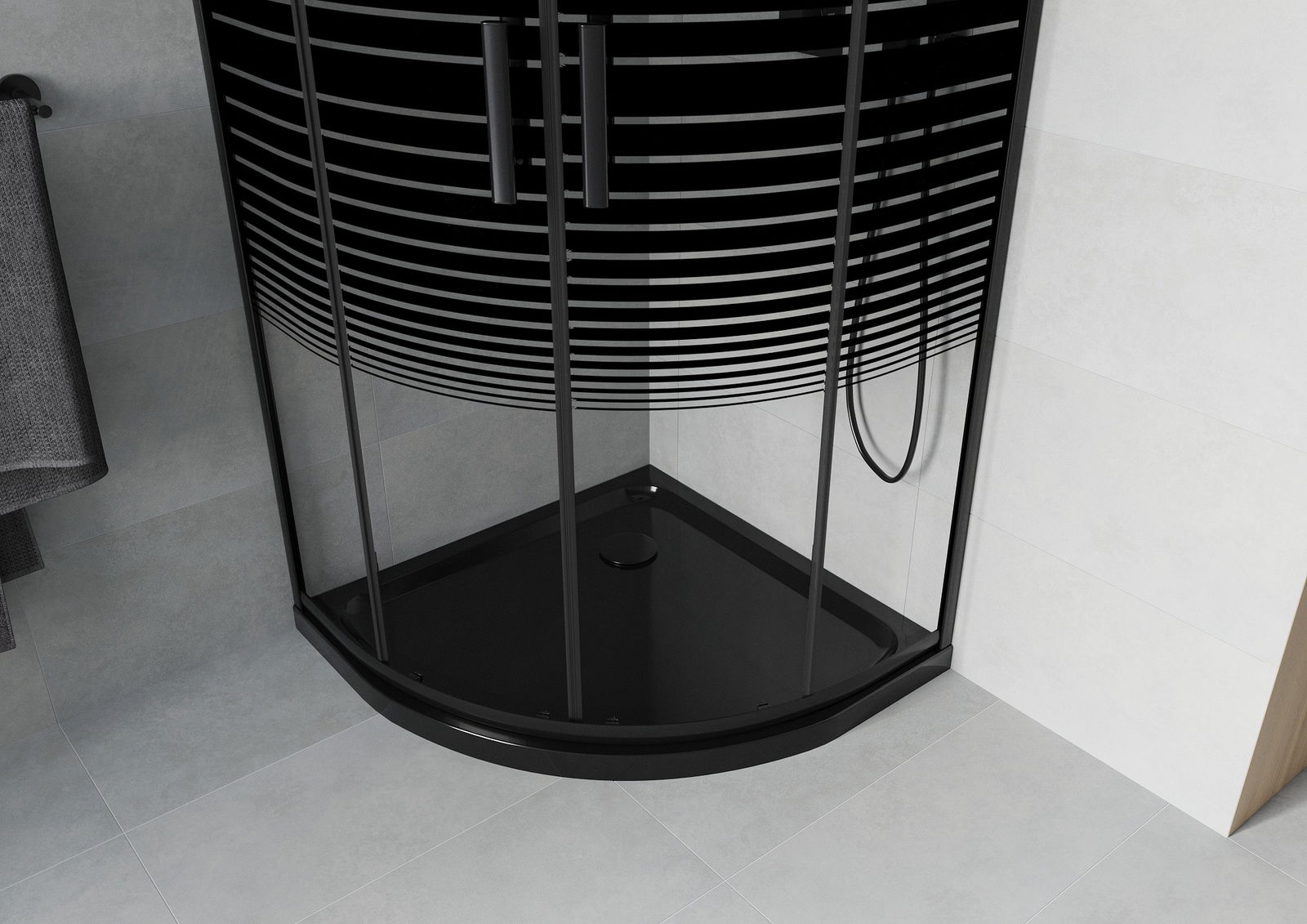 Mexen Rio cabina doccia semicircolare 80 x 80 cm, fasce nere, nero + piatto doccia Flat, nero - 863-080-080-70-20-4170B