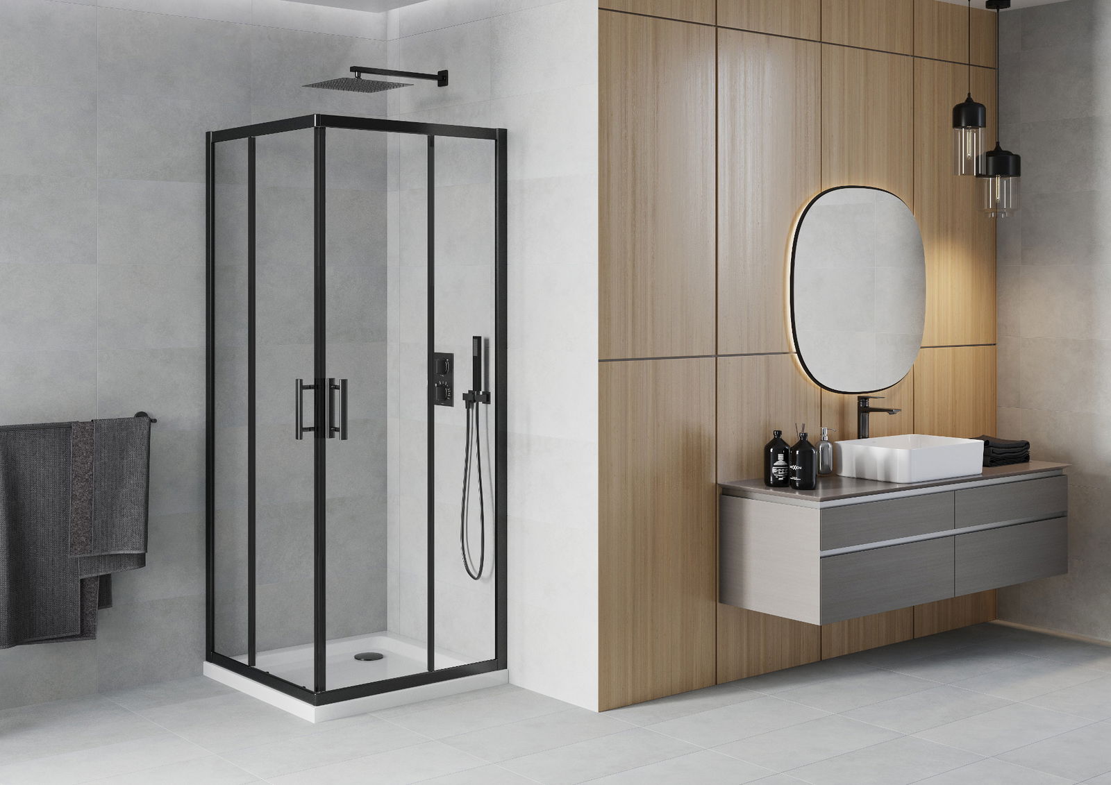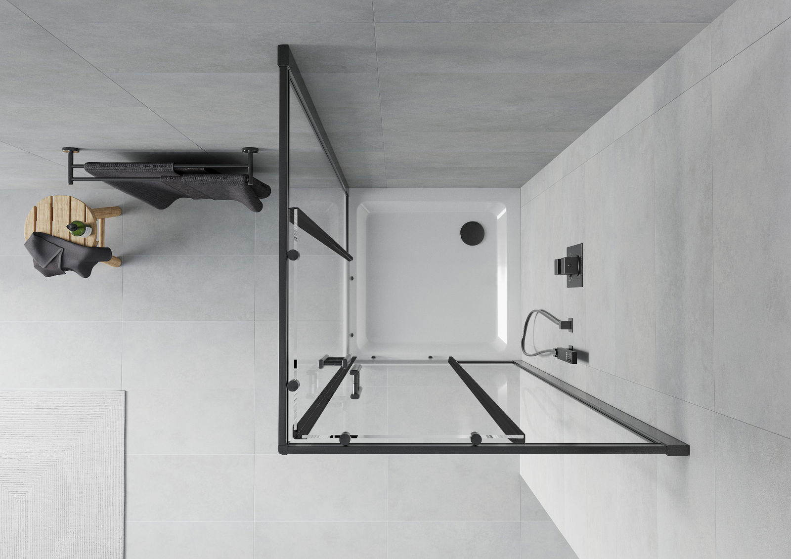 L'impugnatura pratica e comoda è realizzata in metallo durevole e resistente. La forma alla moda combinata con una finitura abbinata al colore dei profili conferisce all'insieme un aspetto moderno e elegante, enfatizzando l'estetica di ogni bagno.