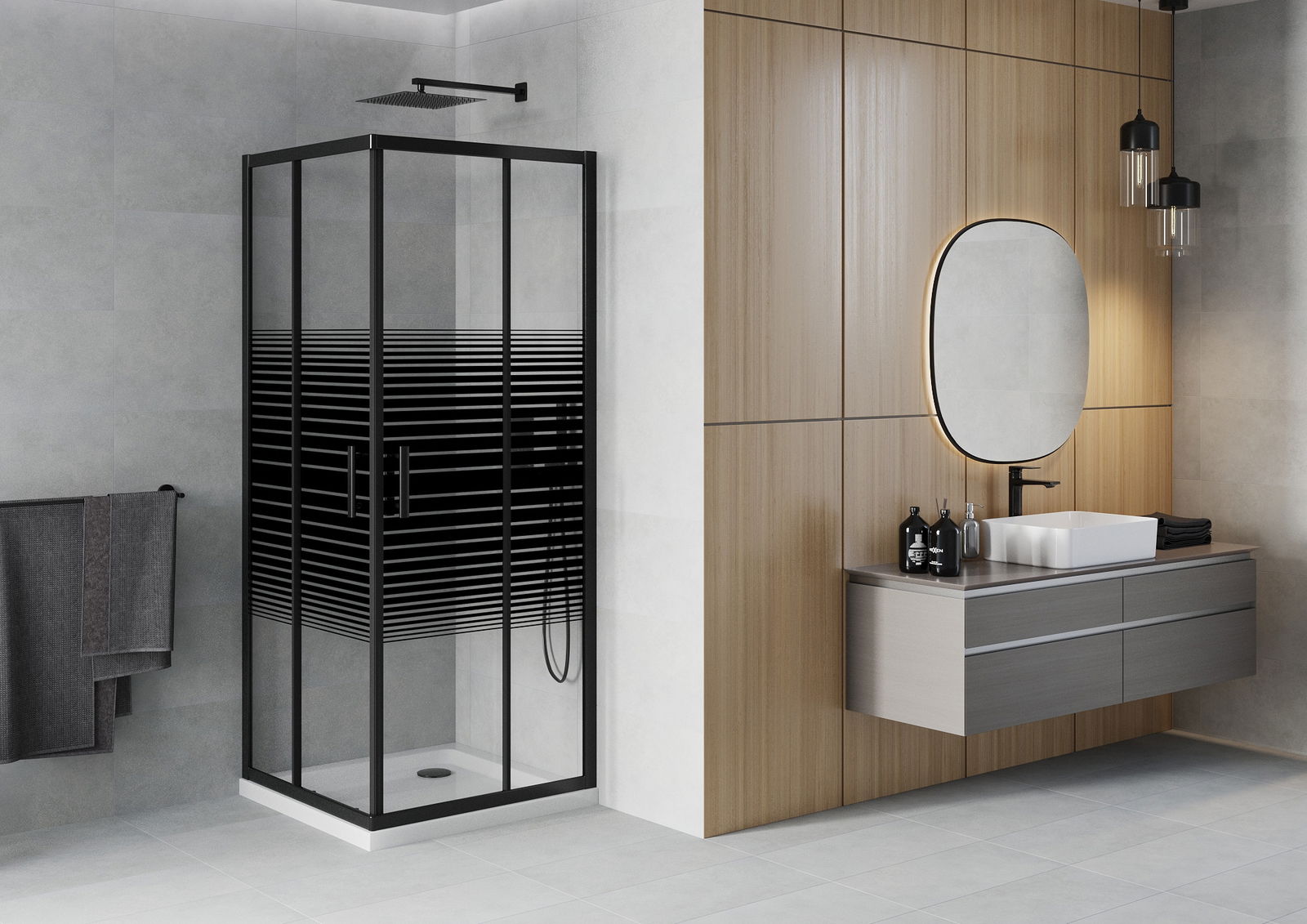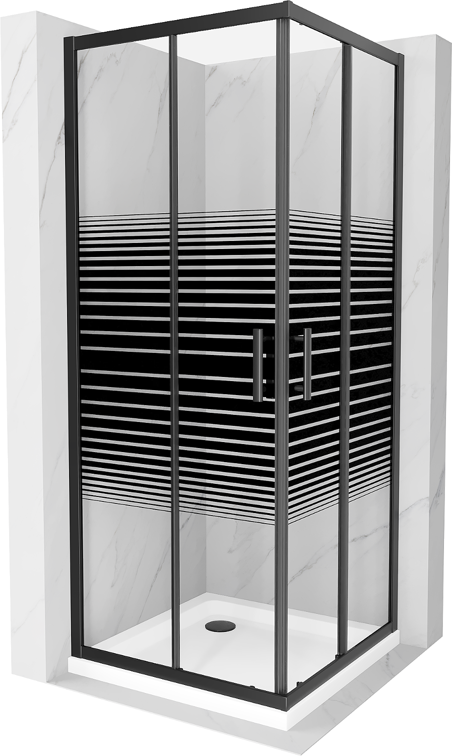 Mexen Rio cabina doccia quadrata 80 x 80 cm, strisce nere, nero + piatto Flat, bianco - 860-080-080-70-20-4010B