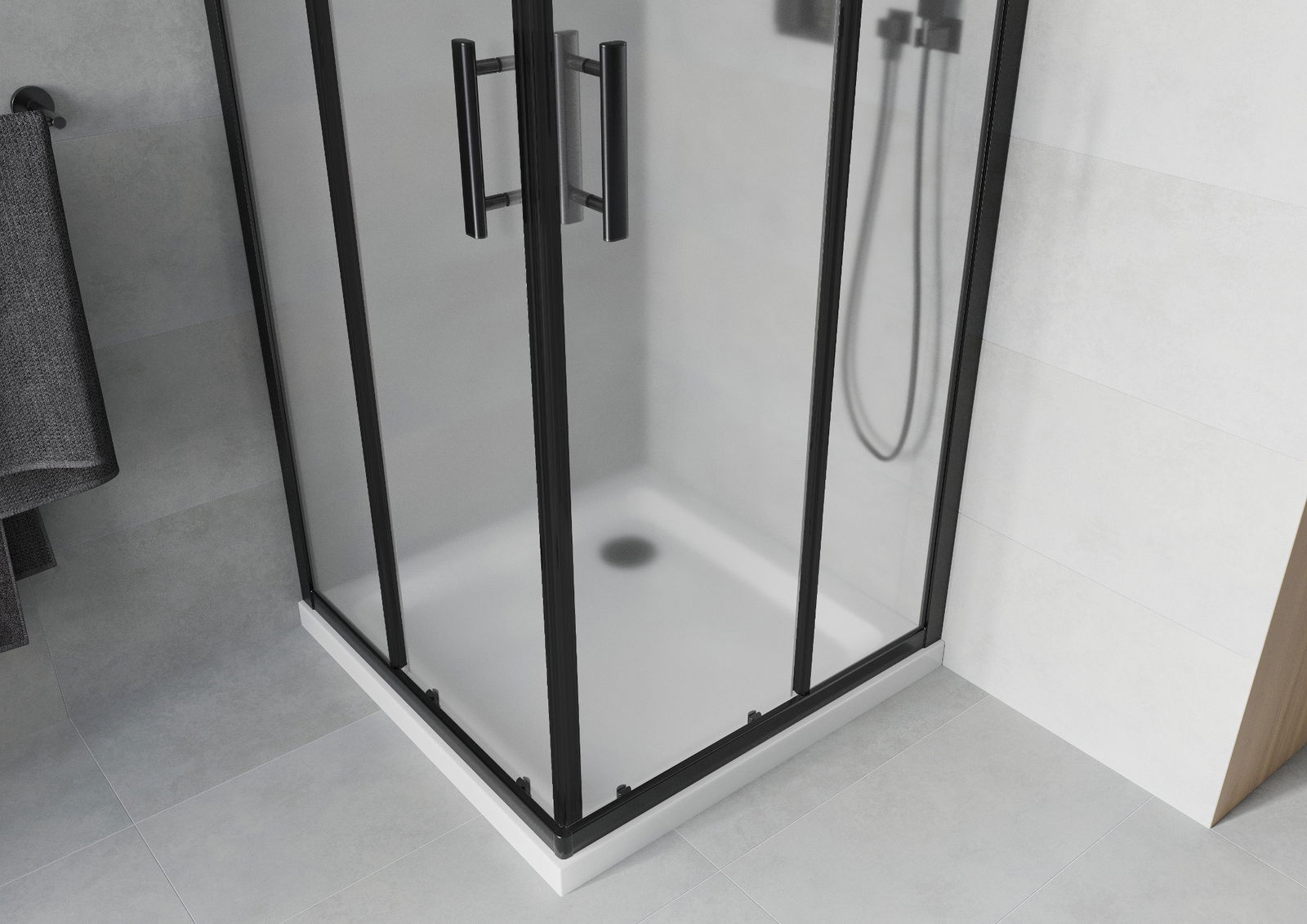Mexen Rio cabina doccia quadrata 70 x 70 cm, smerigliata, nera + piatto doccia Flat, bianco - 860-070-070-70-30-4010B