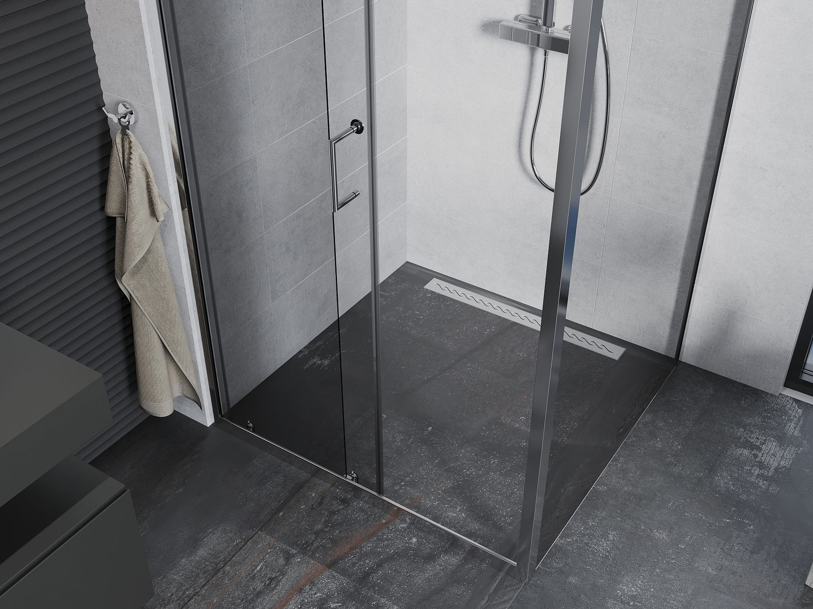 Le porte scorrevoli si muovono su guide speciali e non richiedono spazio aggiuntivo per essere aperte, quindi sono adatte per bagni più piccoli. Grazie ai doppi rulli in plastica resistente, il loro movimento è fluido.