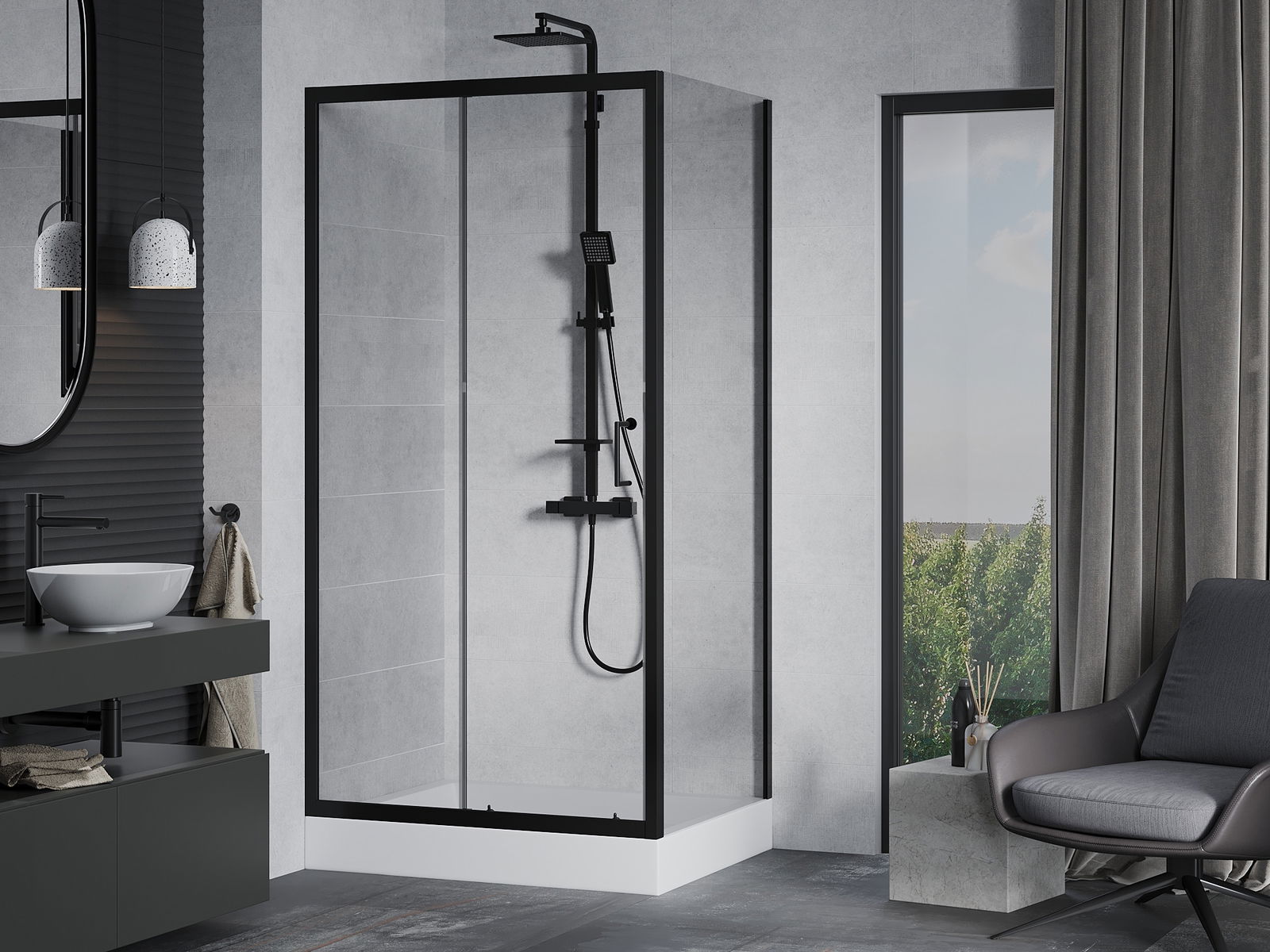 Mexen Apia cabina doccia scorrevole 100 x 80 cm, trasparente, nero + piatto doccia Rio - 840-100-080-70-00-4510