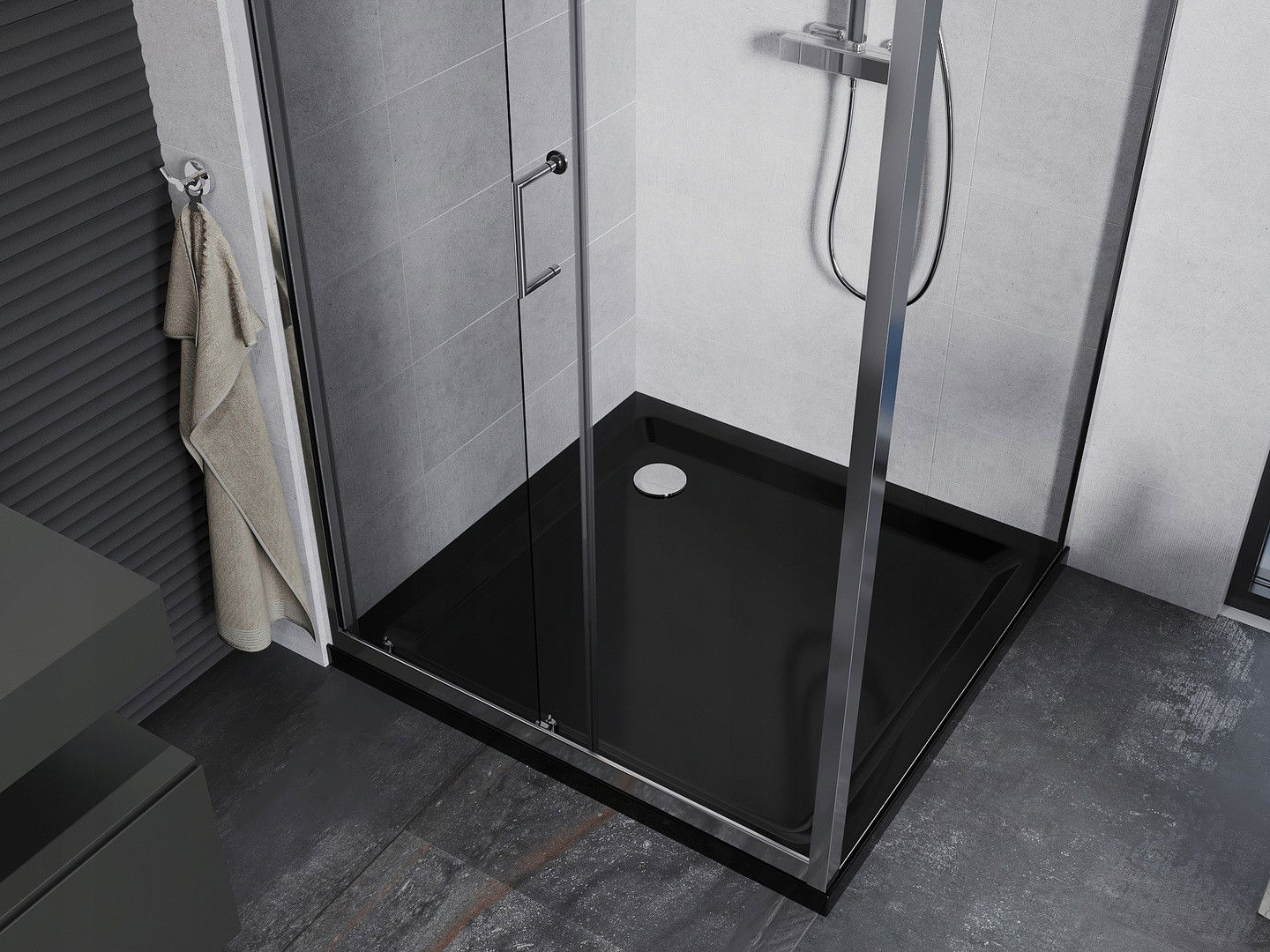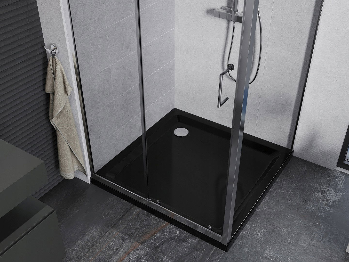 Mexen Apia cabina doccia scorrevole 100 x 100 cm, trasparente, cromo + piatto Flat, nero - 840-100-100-01-00-4070