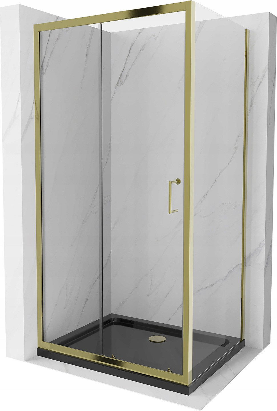 Mexen Apia cabina doccia scorrevole 100 x 80 cm, trasparente, dorata + piatto Flat, nero - 840-100-080-50-00-4070G