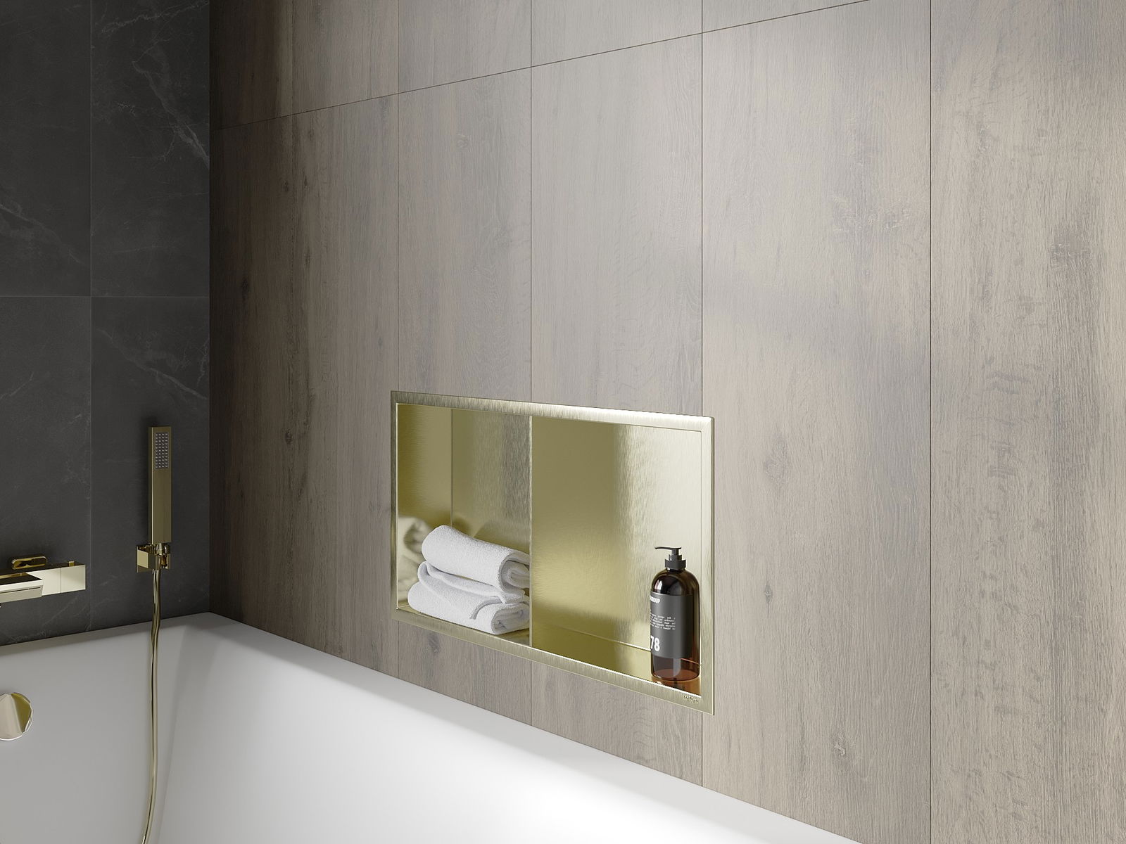 Mexen X-Wall-R mensola da incasso con flangia e mensola 60 x 30 cm, oro spazzolato - 1950603010S