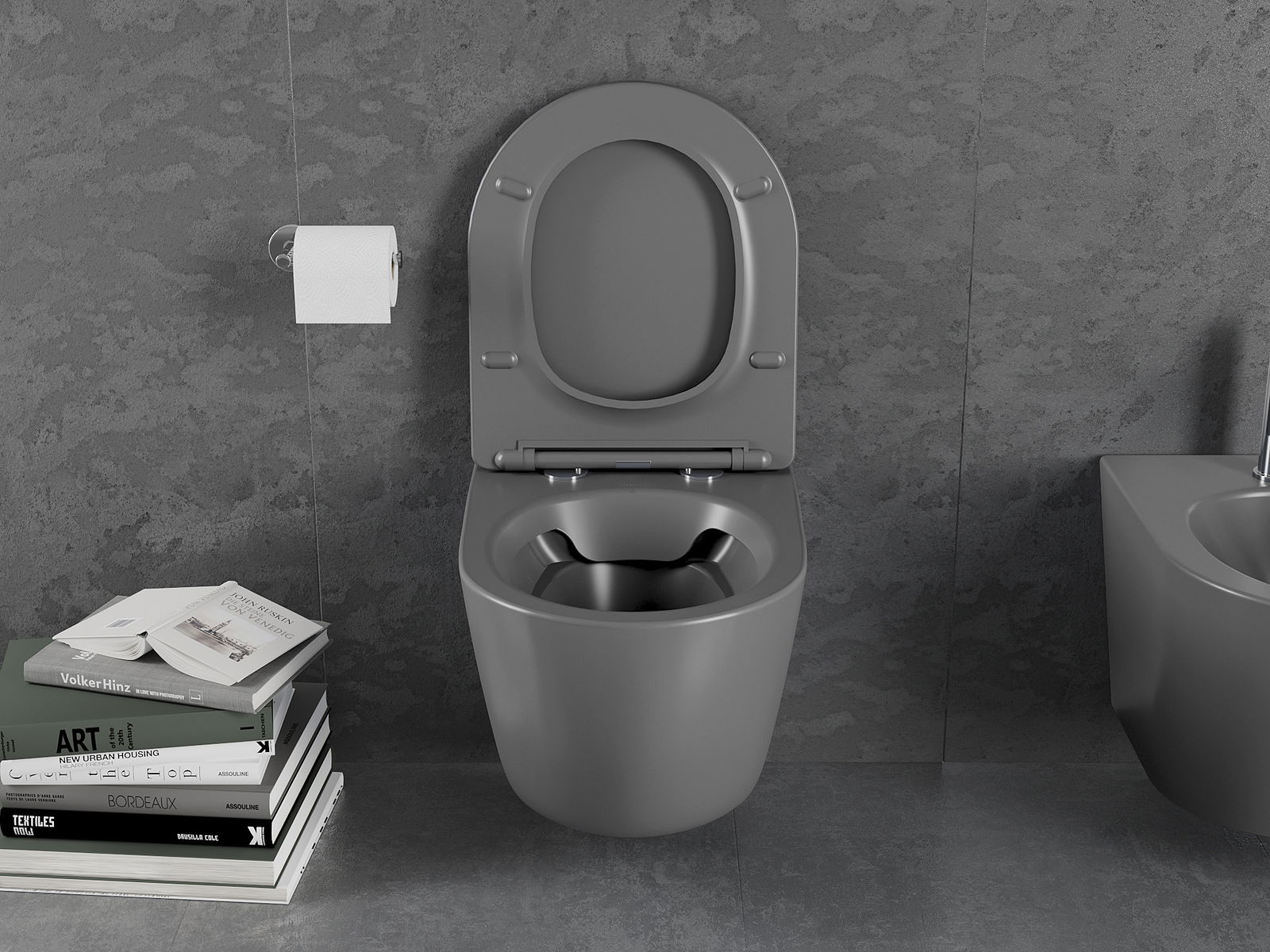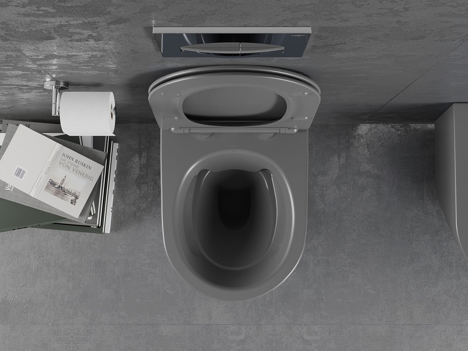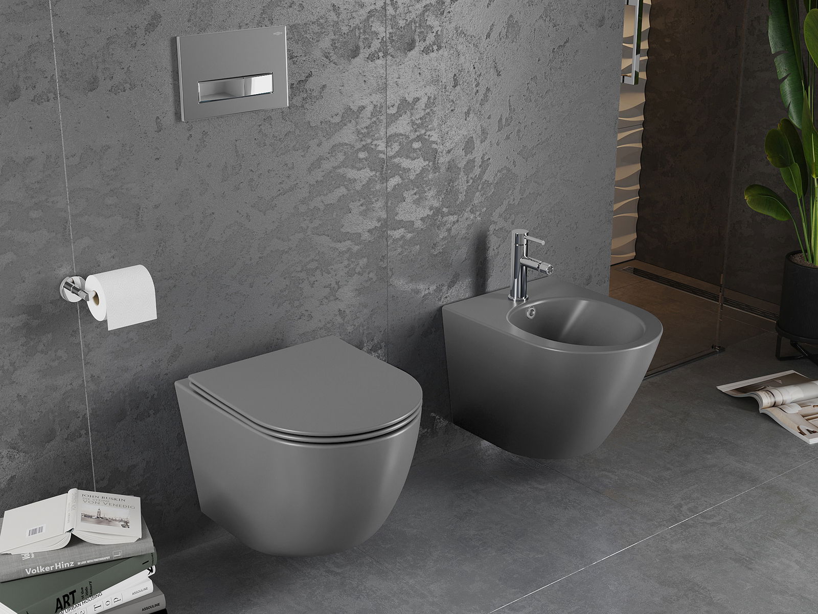La superficie opaca della ceramica sottolinea perfettamente il carattere del colore del prodotto, conferendogli una finitura unica e distintiva. La struttura sottile della ceramica opaca porta eleganza al bagno, creando uno spazio estetico.