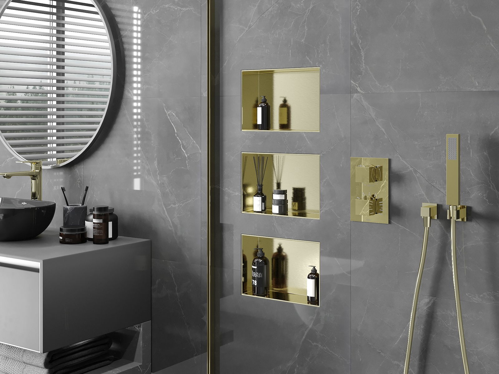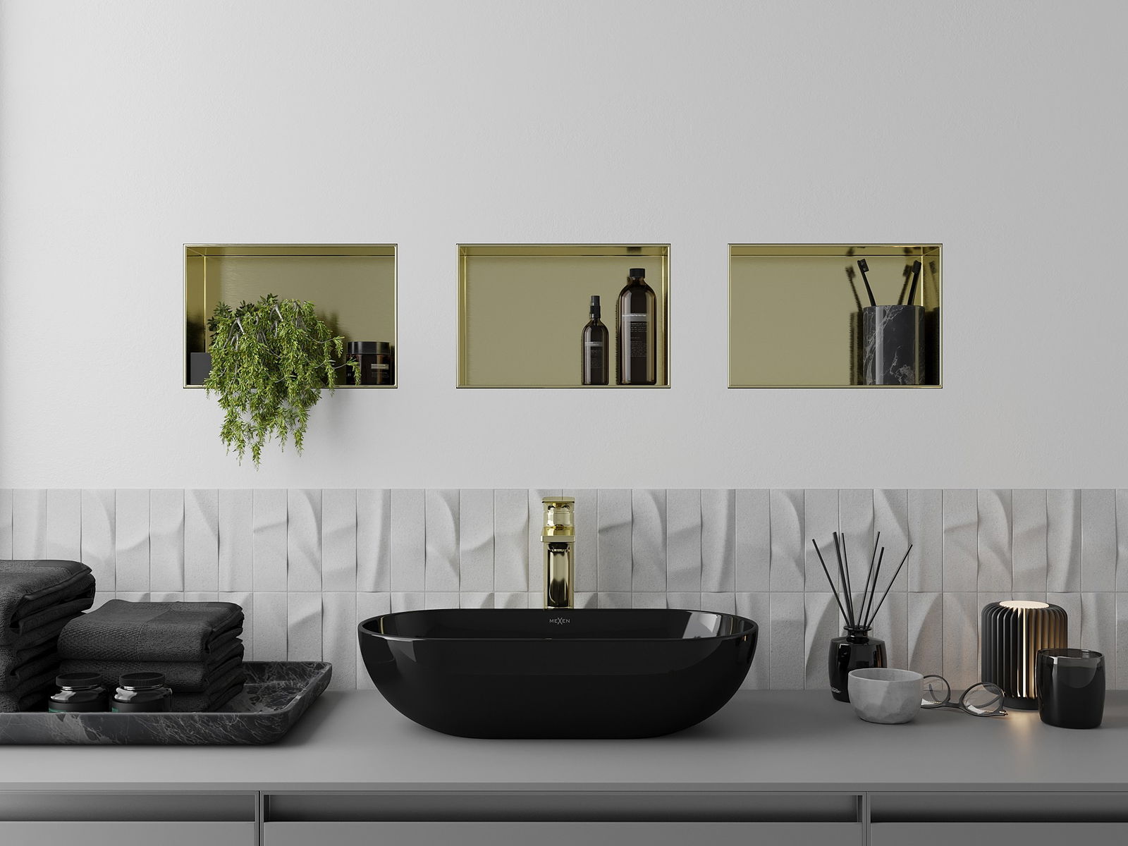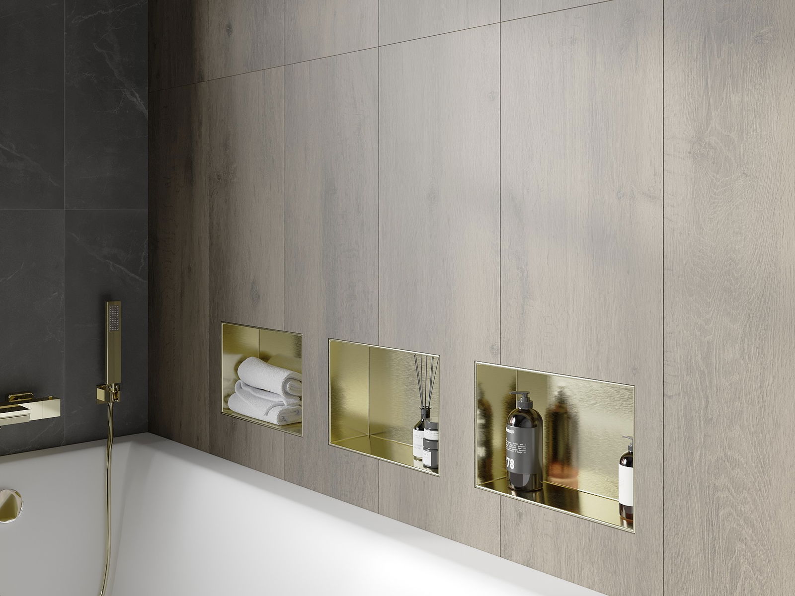 Mexen X-Wall-NR mensola ad incasso senza bordo 30 x 20 cm, oro spazzolato - 1951302010