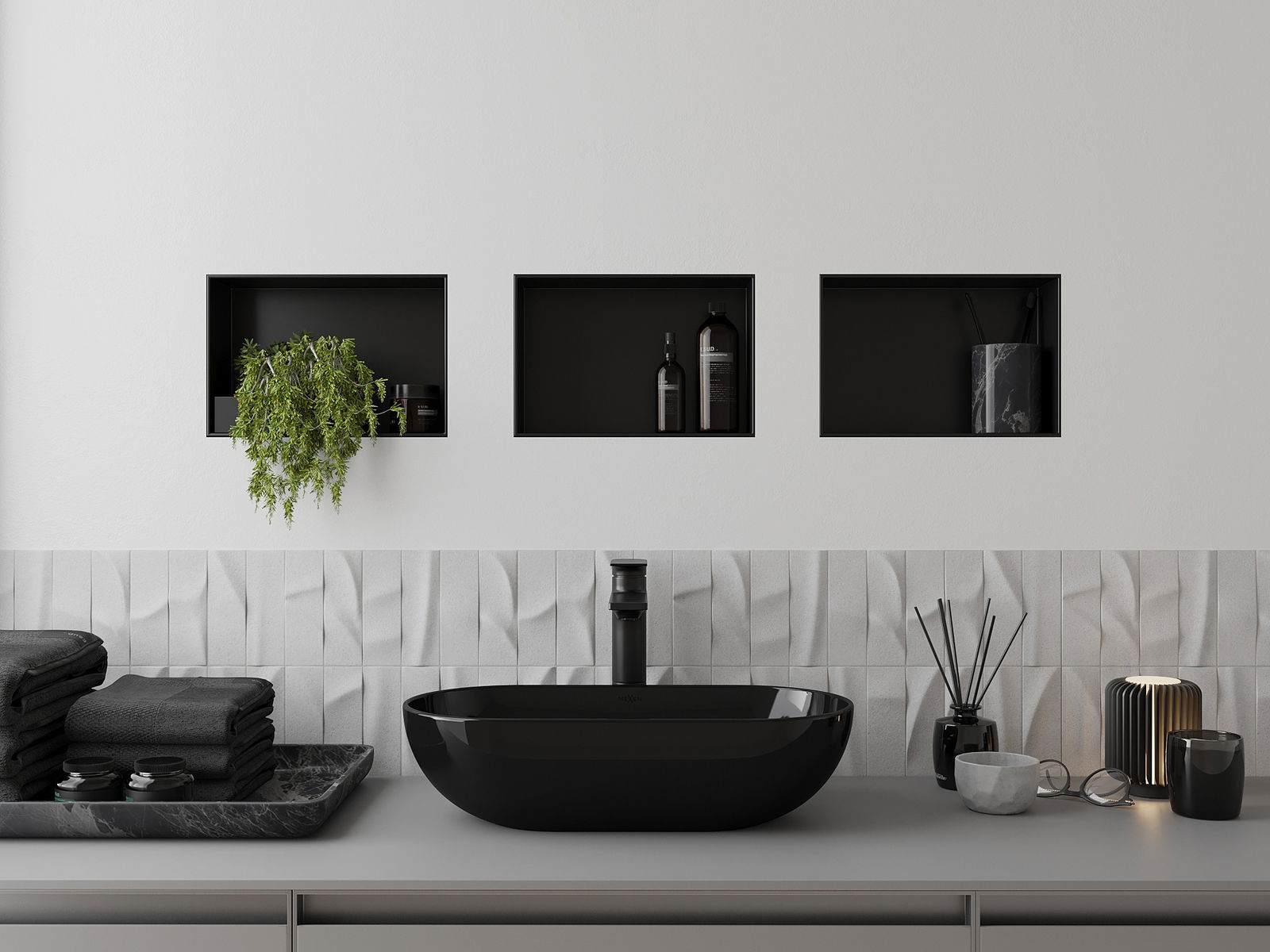 Mexen X-Wall-NR mensola da incasso senza cornice 30 x 20 cm, nera - 1971302010