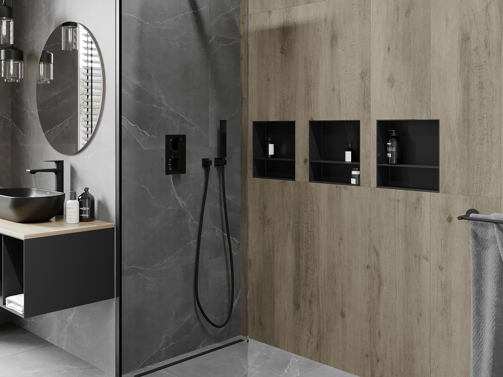 Mexen X-Wall-NR mensola a nicchia senza bordo con mensola 30 x 30 cm, nera - 1971303010S