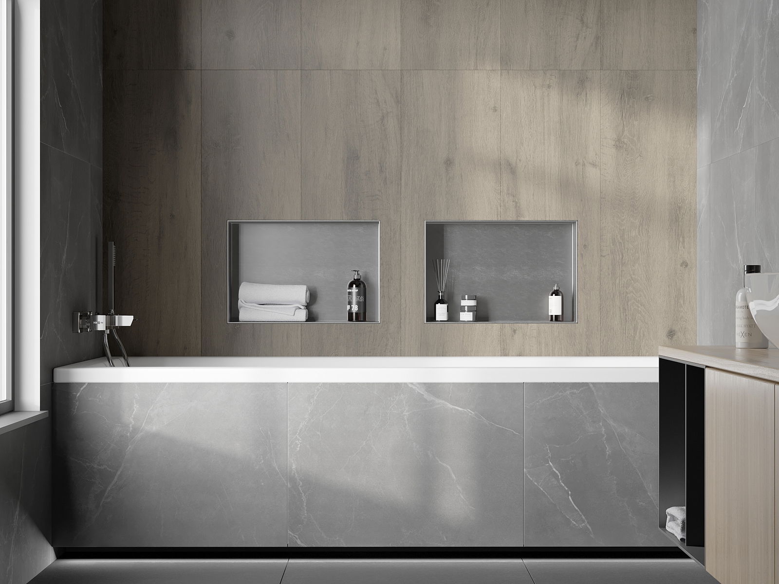 Possibilità di montaggio a parete o in una struttura appositamente preparata. È una soluzione estremamente moderna e funzionale, che consente di risparmiare spazio e di adattare il prodotto all'estetica degli interni, creando una composizione armoniosa.