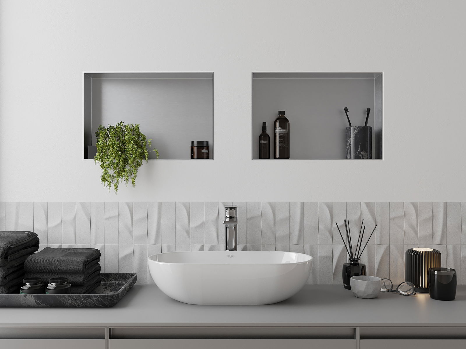 Mexen X-Wall-NR mensola ad incasso senza cornice 45 x 30 cm, inox - 1911453010