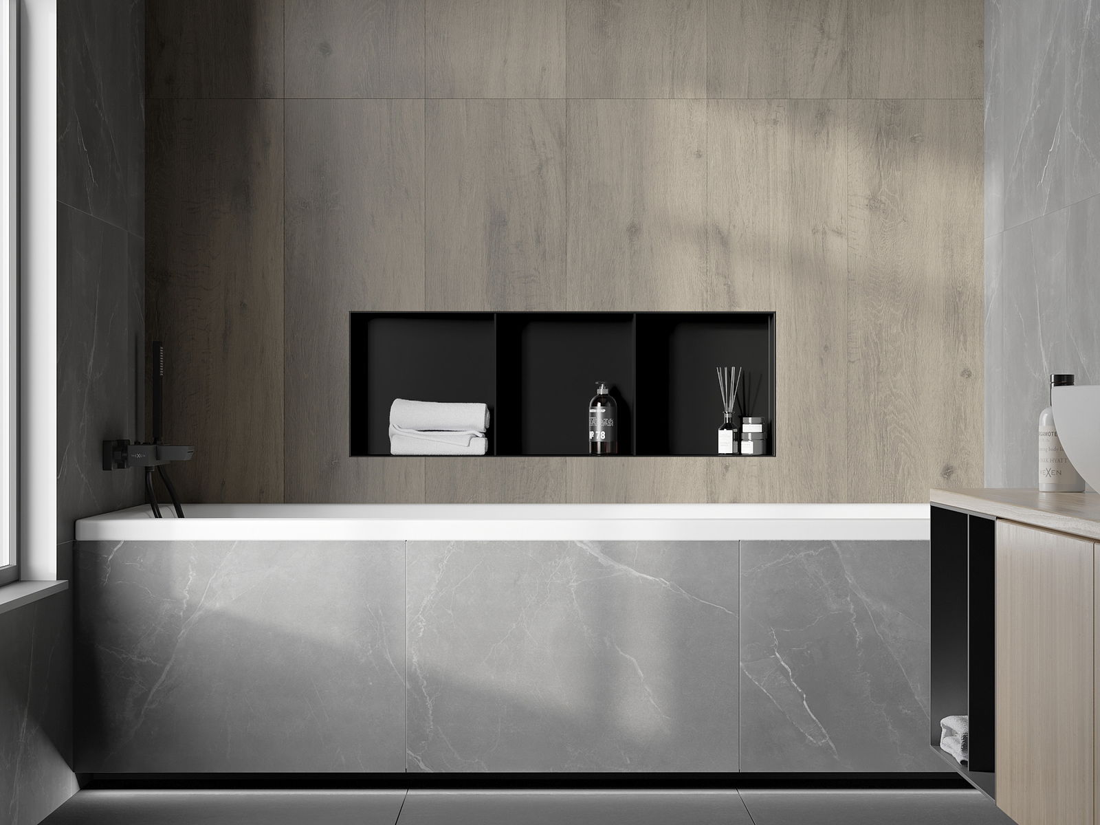 Possibilità di montaggio a parete o in una struttura appositamente preparata. È una soluzione estremamente moderna e funzionale, che consente di risparmiare spazio e di adattare il prodotto all'estetica degli interni, creando una composizione armoniosa.