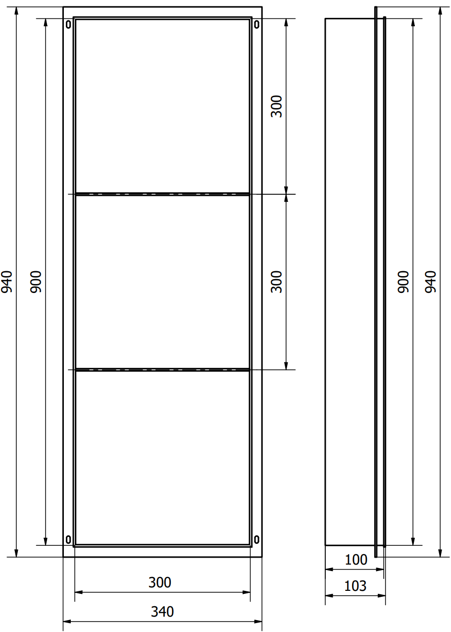 Mexen X-Wall-NR mensola a nicchia senza flangia con ripiano 90 x 30 cm, nera - 1971903010S